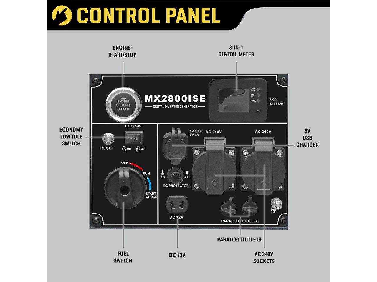 MACFARLANE - 2.8kVA Maxwatt Digital Inverter Electric Start Generator