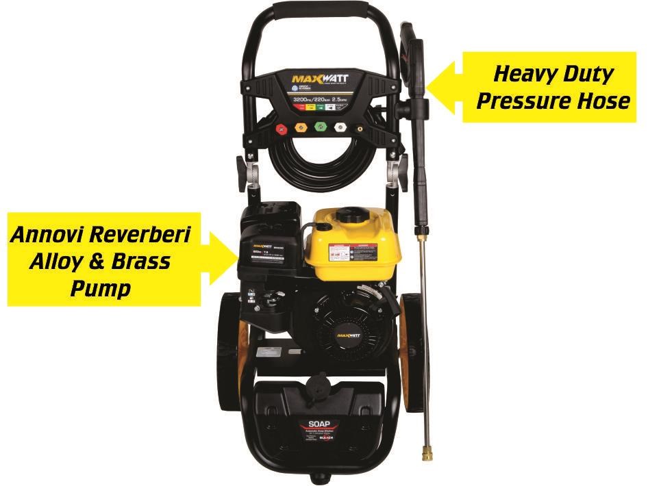 The Maxwatt pressure washer has been manufactured using only high-quality components and designed to last in the toughest conditions.