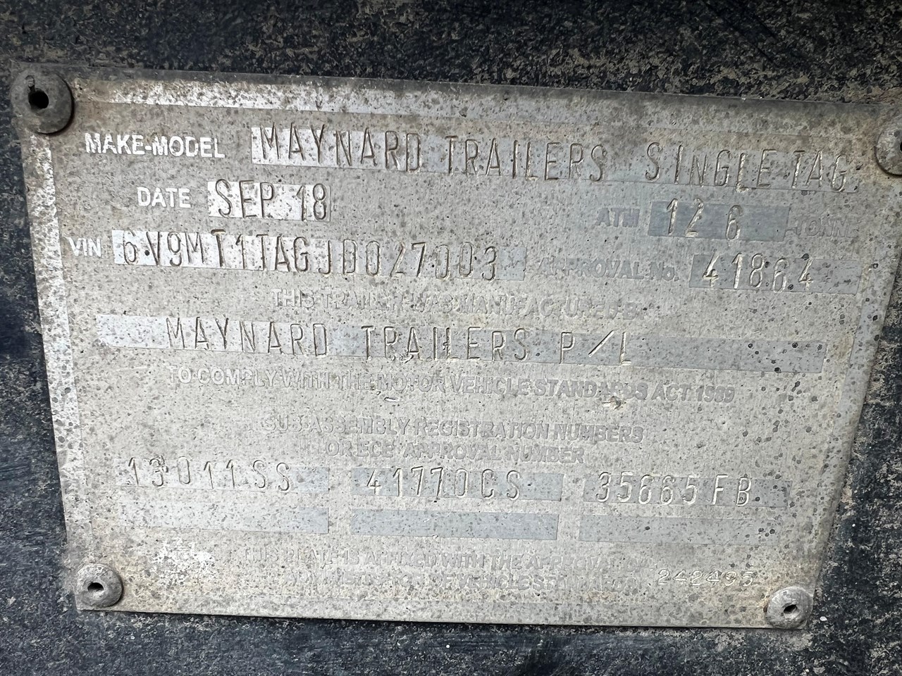 | Title | 2018 MAYNARD TRAILERS SINGLE AXLE TAG |