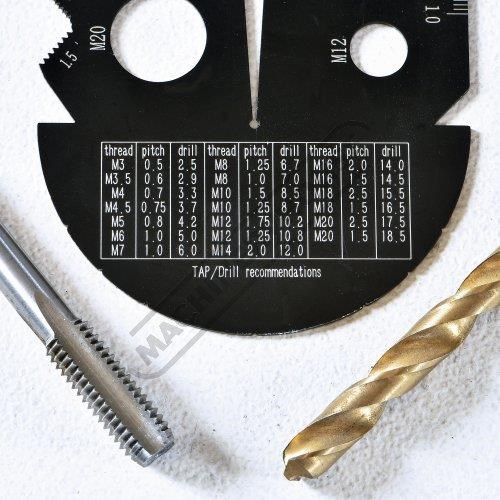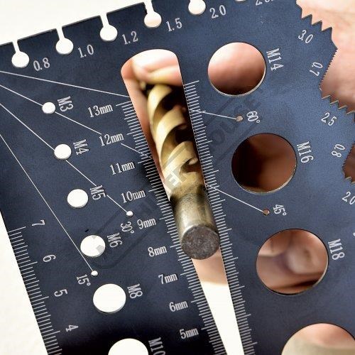 This multi gauge is the ideal tool as it can not only identify the size of bolts by checking the length/diameters/thread pitches but also can choose correct drills & determining taps before tapping. This gauge is also useful for checking thickness of washers or sheet metal, marking lines and measuring angles this multi gauge has an amazing wide variety of tasks it can be used to check. It also includes a hole gauge to be able to quickly & easily find the diameter of a hole up to 13mm.