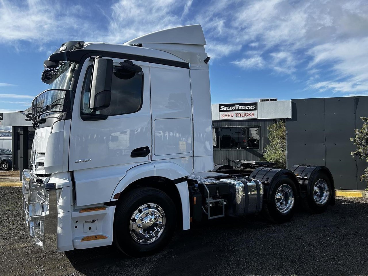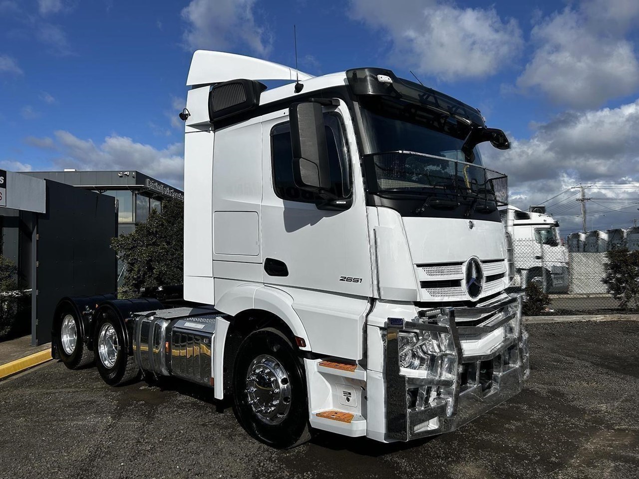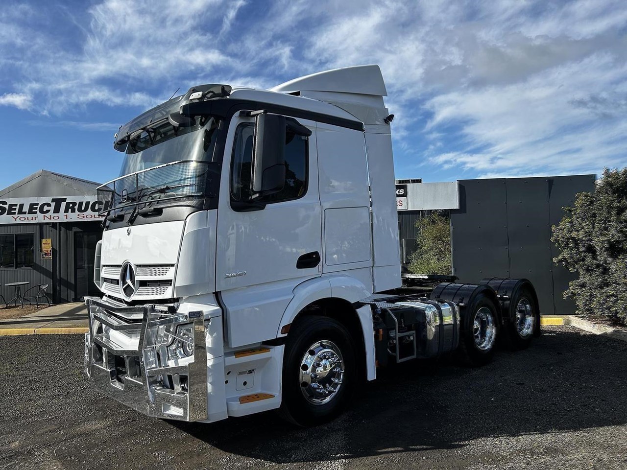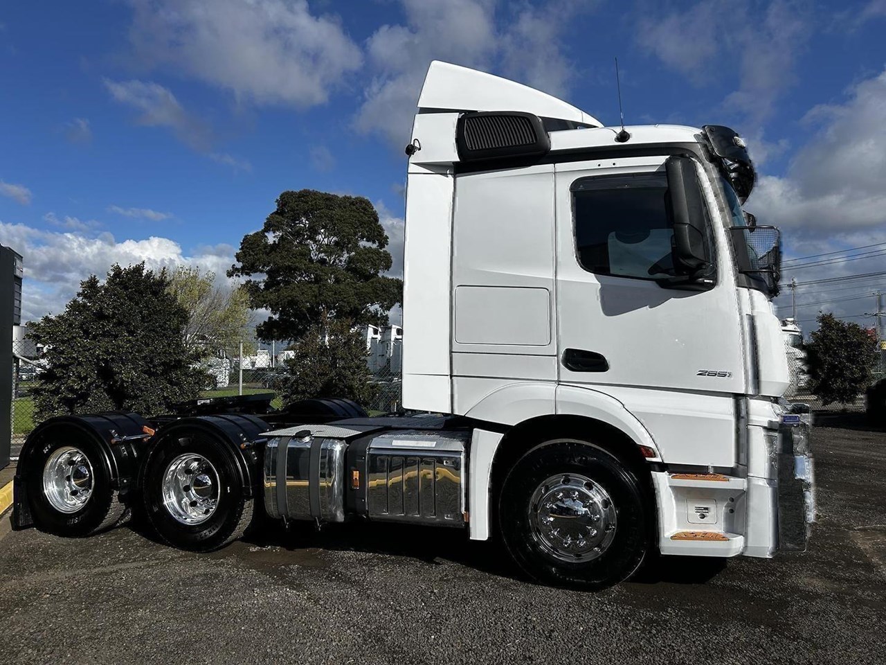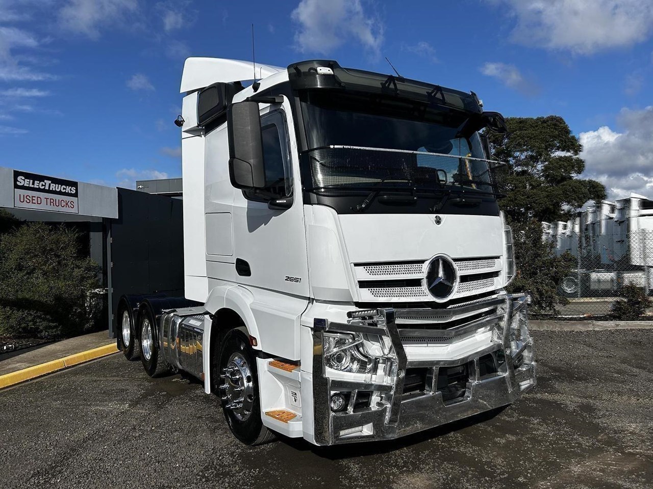 *~\r\nCHOICE OF 5 *~\r\n2021 Mercedes-benz Actros 2651 6x4 prime mover, m-benz 510hp, auto transmission, m-benz diffs, 70 tonne rated, abs, integrated mid roof sleeper cab with bunk cooler , alloy bullbar, alloy rims, ex major fleet truck with excellent service history , comes with vic RWC & 3 months or 50,000klms selectrucks drive-line warranty , KLMS START FROM 600,000-700,000 !