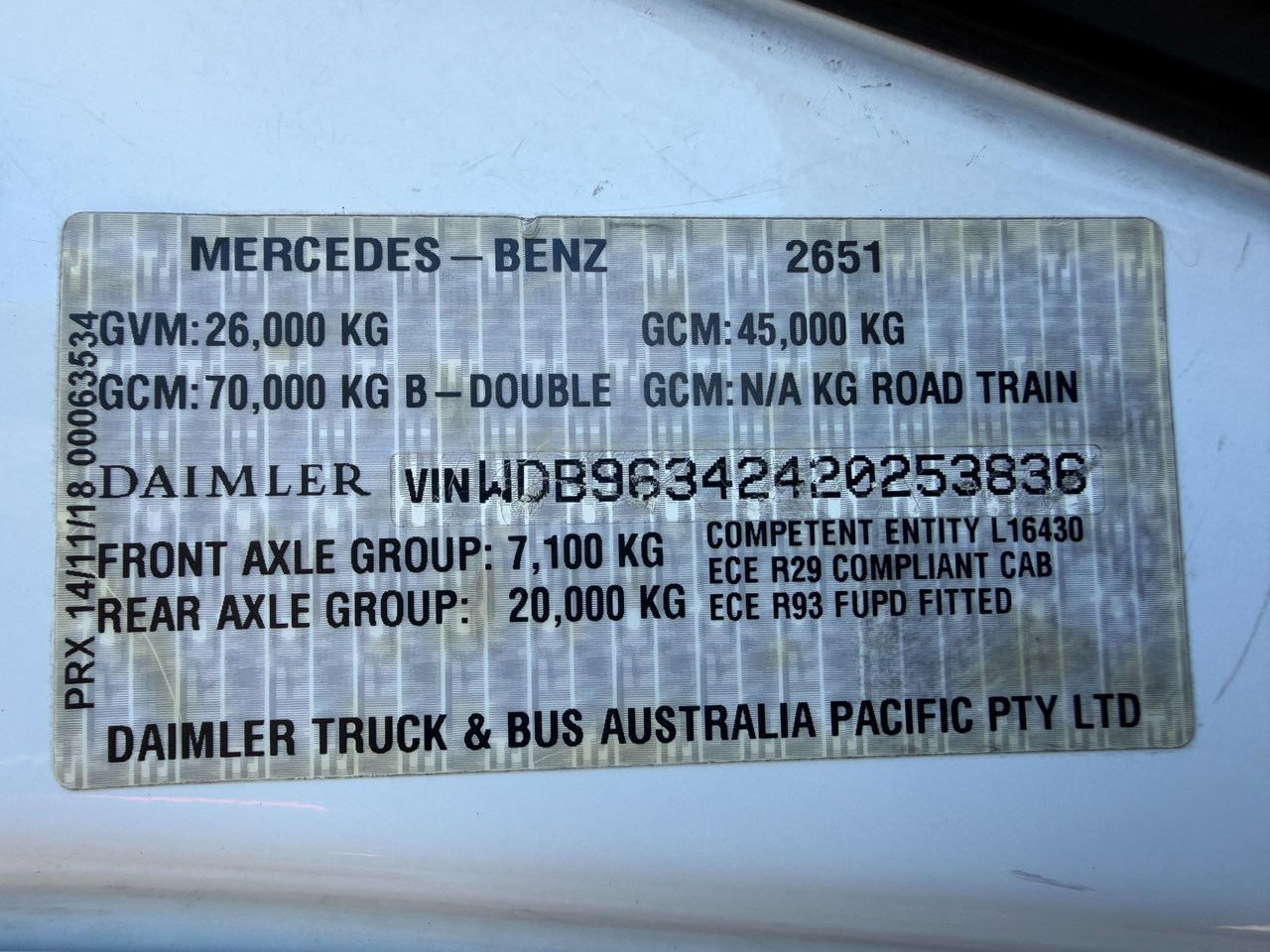 2019 Low Klm Mercedes-Benz Actros 2651 6x4 prime mover, M-benz 510 hp " only 321,000klms " auto shift , 70 tonne b-double rated, integrated sleeper cab, alloy bullbar, alloy rims, excellent cond. Licensed ready for work. $90,000 Plus GST