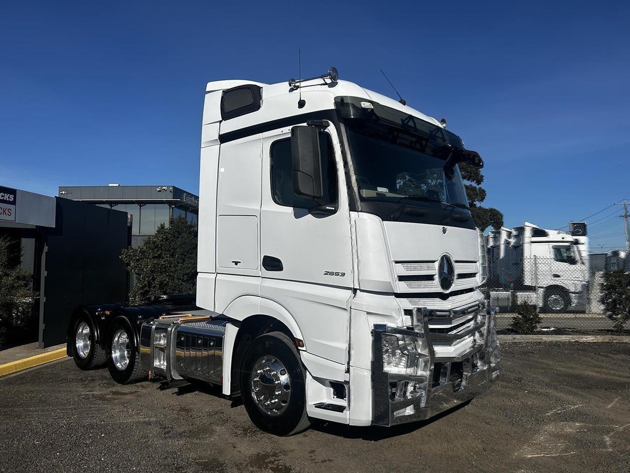 2020 Mercedes-Benz Actros 2653 6x4 prime mover, M-benz 13ltr engine 530hp, *~\r\n389,000klms *~\r\nauto transmission, airbag suspension, m-benz diffs, 70 tonne rated, integrated sleeper cab with bunk cooler, , alloy bullbar, alloy rims, ex major fleet co. on fleet maintenance program , comes with 3 months or 50,000klms drive-line warranty, vic RWC supplied !
