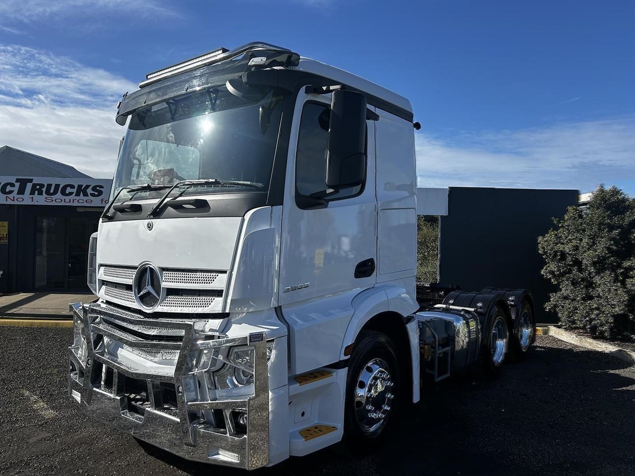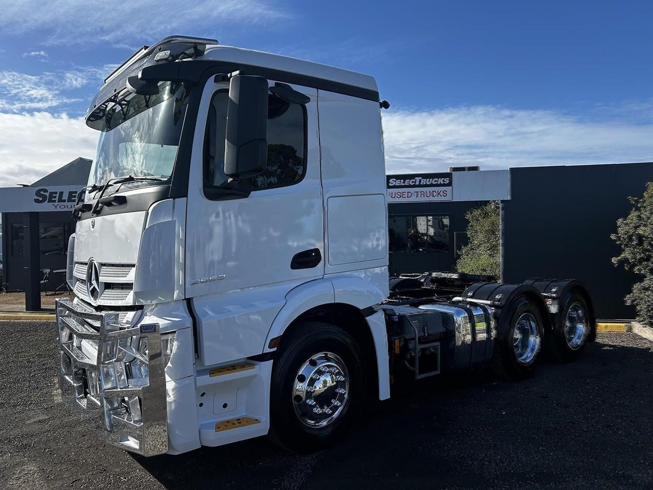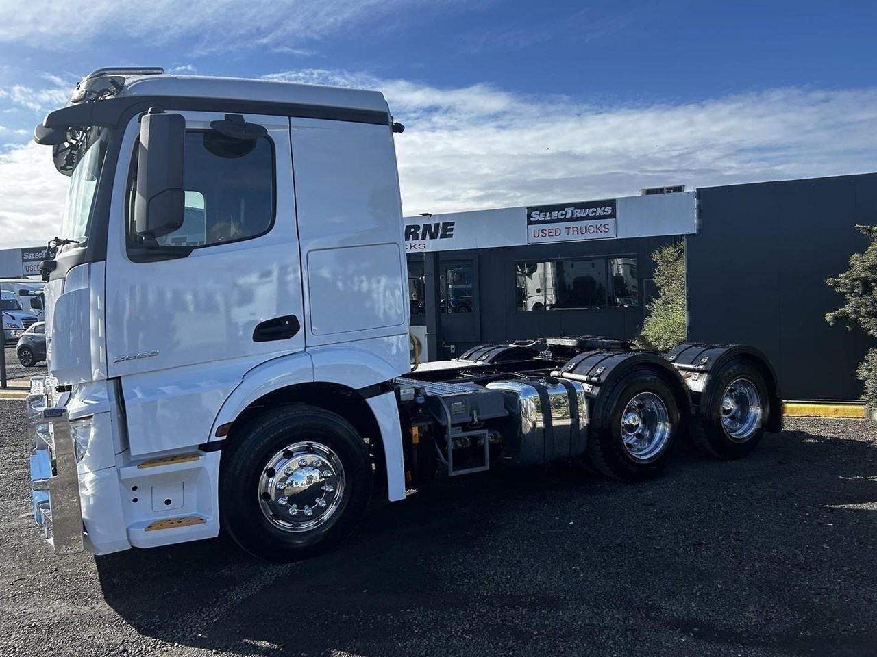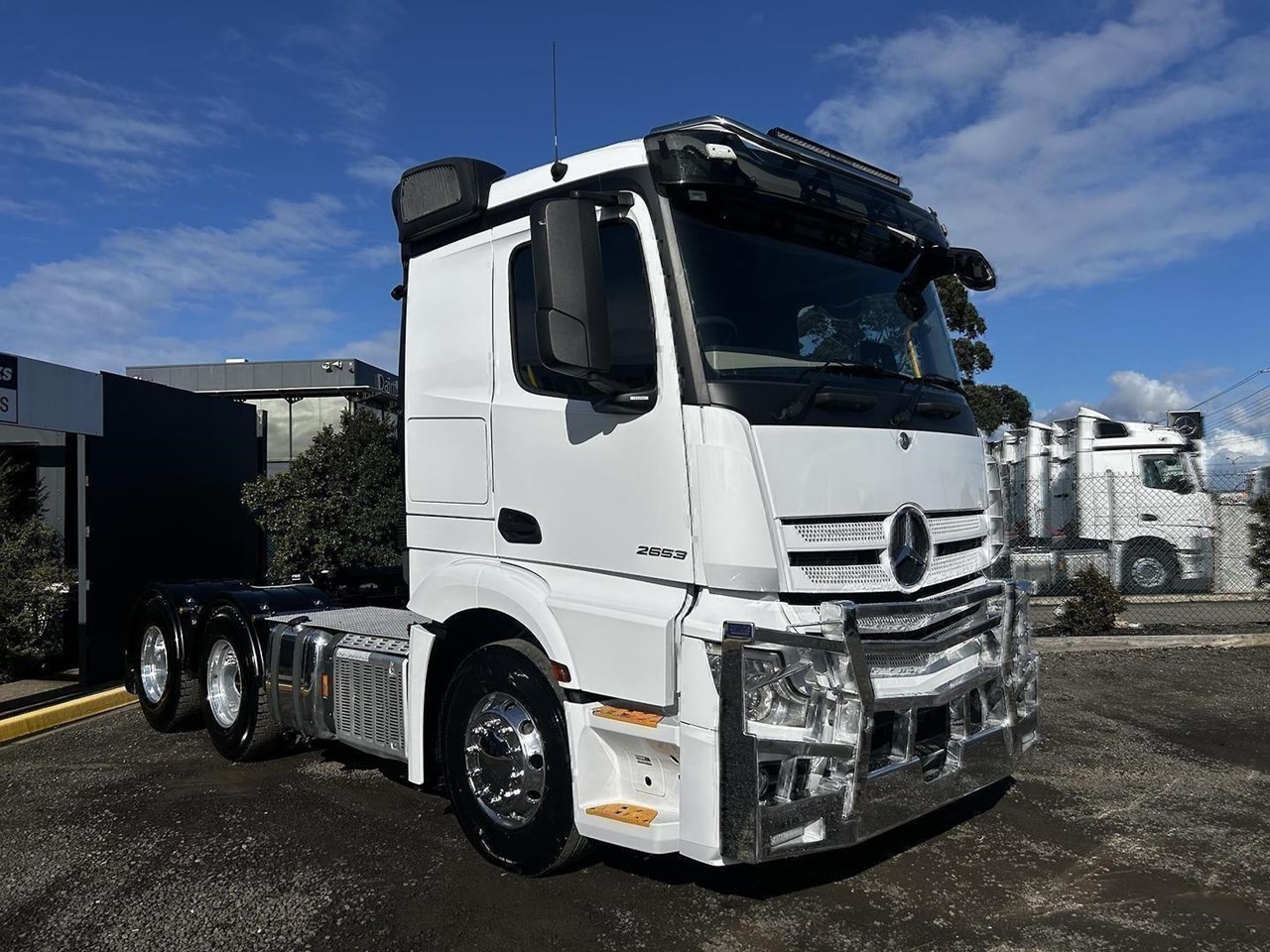 2020 Model Mercedes-benz Actros 2653 6x4 prime mover, m-benz 530hp engine , auto transmission, m-benx diffs, 70 tonne b-double rated, abs, integrated mid roof sleeper cab with viesa cooler, alloy bullbar, alloy rims, *~\r\nNEW TRANS FITTED 180,000KLMS AGO *~\r\nex major fleet truck with service history , comes with vic RWC & 3 months or 50,000klms drive-line warranty !