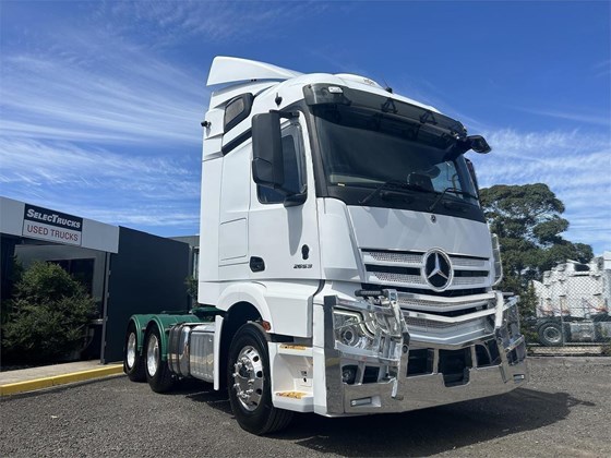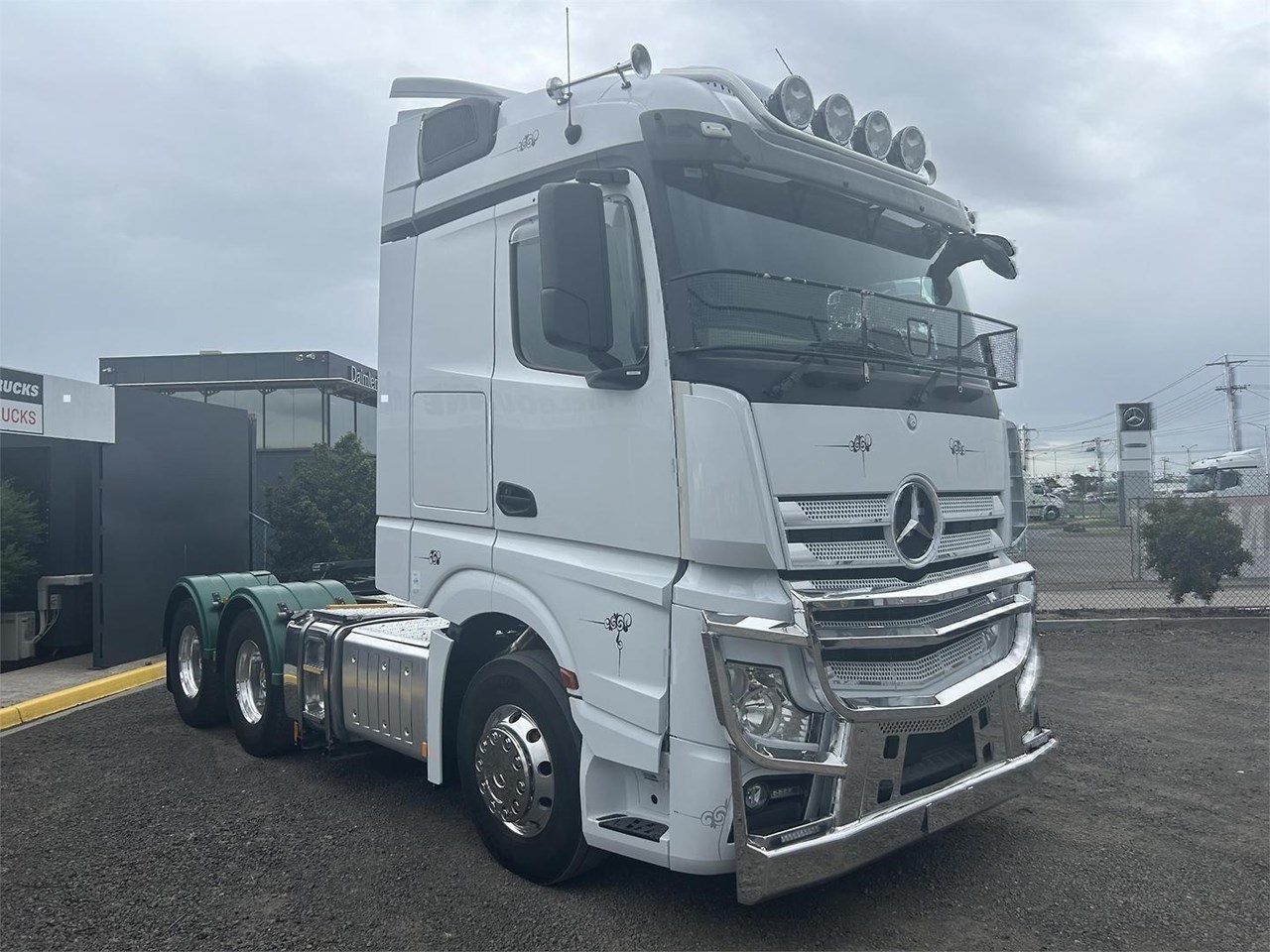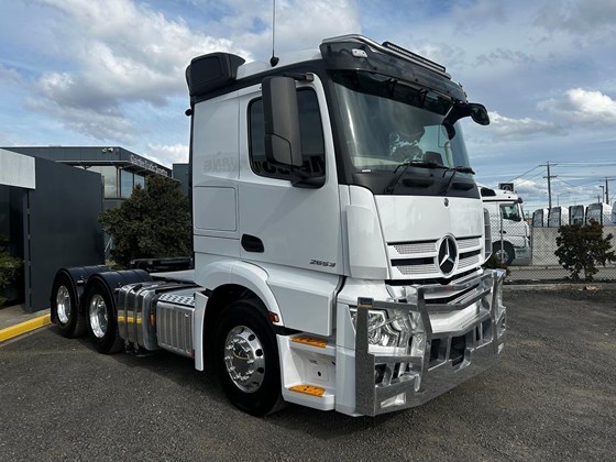 2019 Mercedes-Benz 2653 Actros 6x4 prime mover, 530hp, auto transmission, M-Benz diffs, 90 tonne rated, abs, integrated sleeper with refrigerated bunk cooler, alloy bullbar, alloy rims, roof bar with spot lights, very nice ex one owner truck, full service history available, comes with 3 months drive line warranty & vic RWC ! *~\r\nthis truck applies with our 6 month 100,000klms select certified warranty **