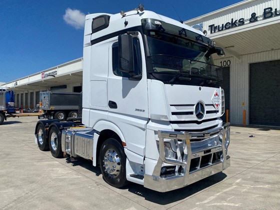 - 70,000kg GCM B-Double rated, Bullbar with LED lights, Jost fixed turntable, alloy rims, UHF, cruise control, cross locks/ diff locks