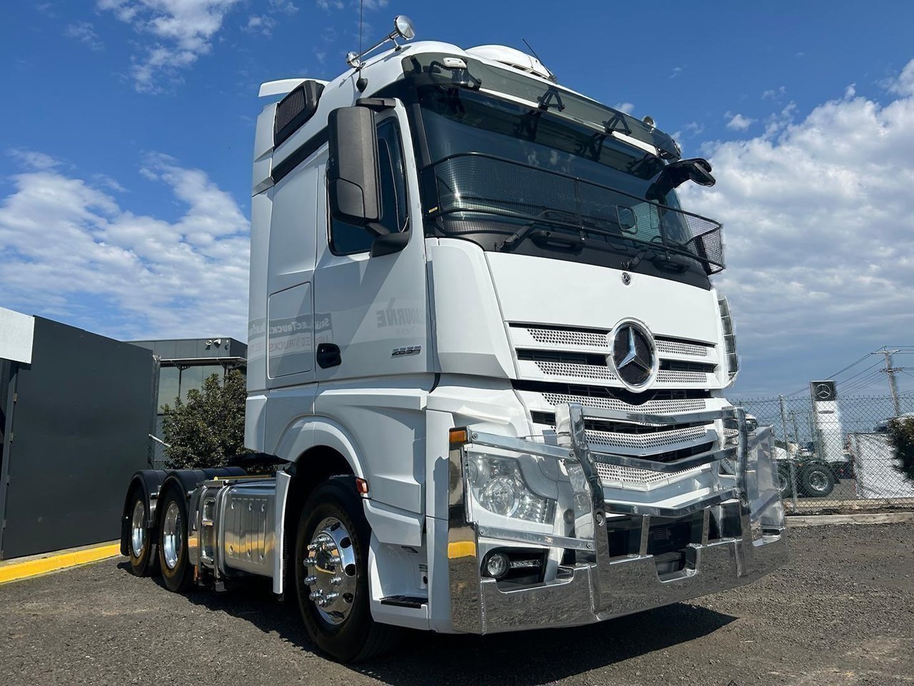 *~\r\nCHOICE OF 2 *~\r\n 2020 Mercedes-Benz Actros 2658 6x4 prime mover, 16ltr M-Benz engine, auto transmission, M-Benz diffs, 90 tonne rated, integrated sleeper cab with viesa cooler, alloy bullbar, alloy rims, excellent cond ex one owner trucks with full service history , comes with Vic RWC & 3 months driveline warranty !