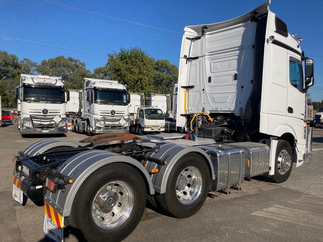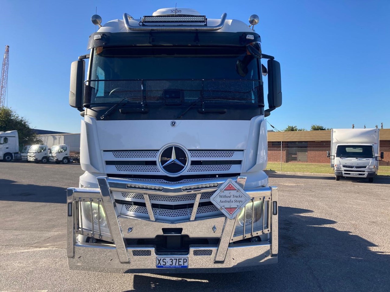 2021 Mercedes Benz Actros 2658 6x4 prime mover 106000 kg GCM, Mercedes OM473 580hp engine, Mercedes Powershift 3 12 speed AMT transmission, Mercedes Hypoid axles on air bag suspension, alloy bull bar, aerodynamic kit, new drive guards, SA Government roadworthy inspection, in excellent condition & ready to go.