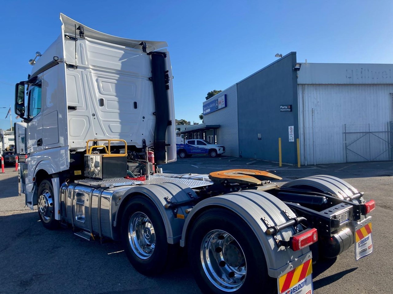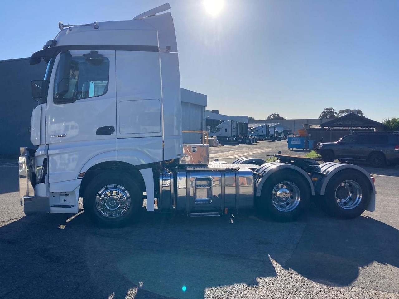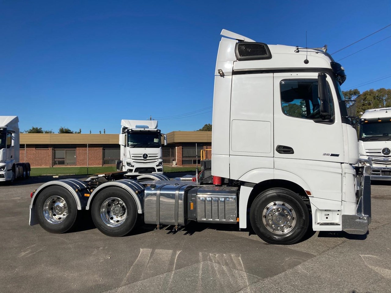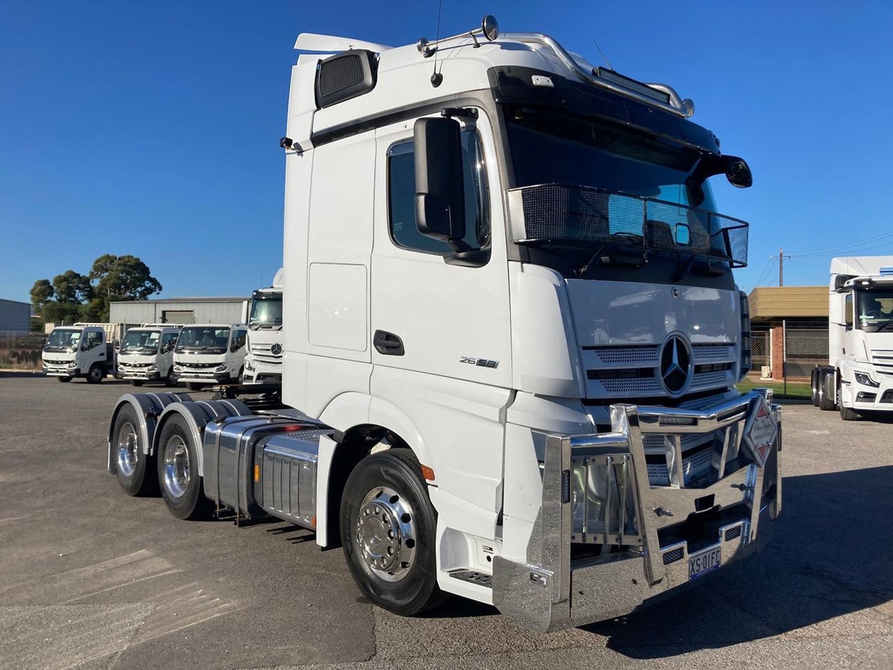 2022 Mercedes Actros 2658 6x4 Road train / B-Double prime mover, 580hp Mercedes OM473 engine, 12 speed Mercedes AMT transmission, Mercedes Hypoid drive axles on air bag suspension, alloy bull bae, Dometic bunk cooler, integrated sleeper cabin, Jost 50mm fixed turntable, new drive guards, will be sold with SA roadworthy, ex major fleet in excellent condition