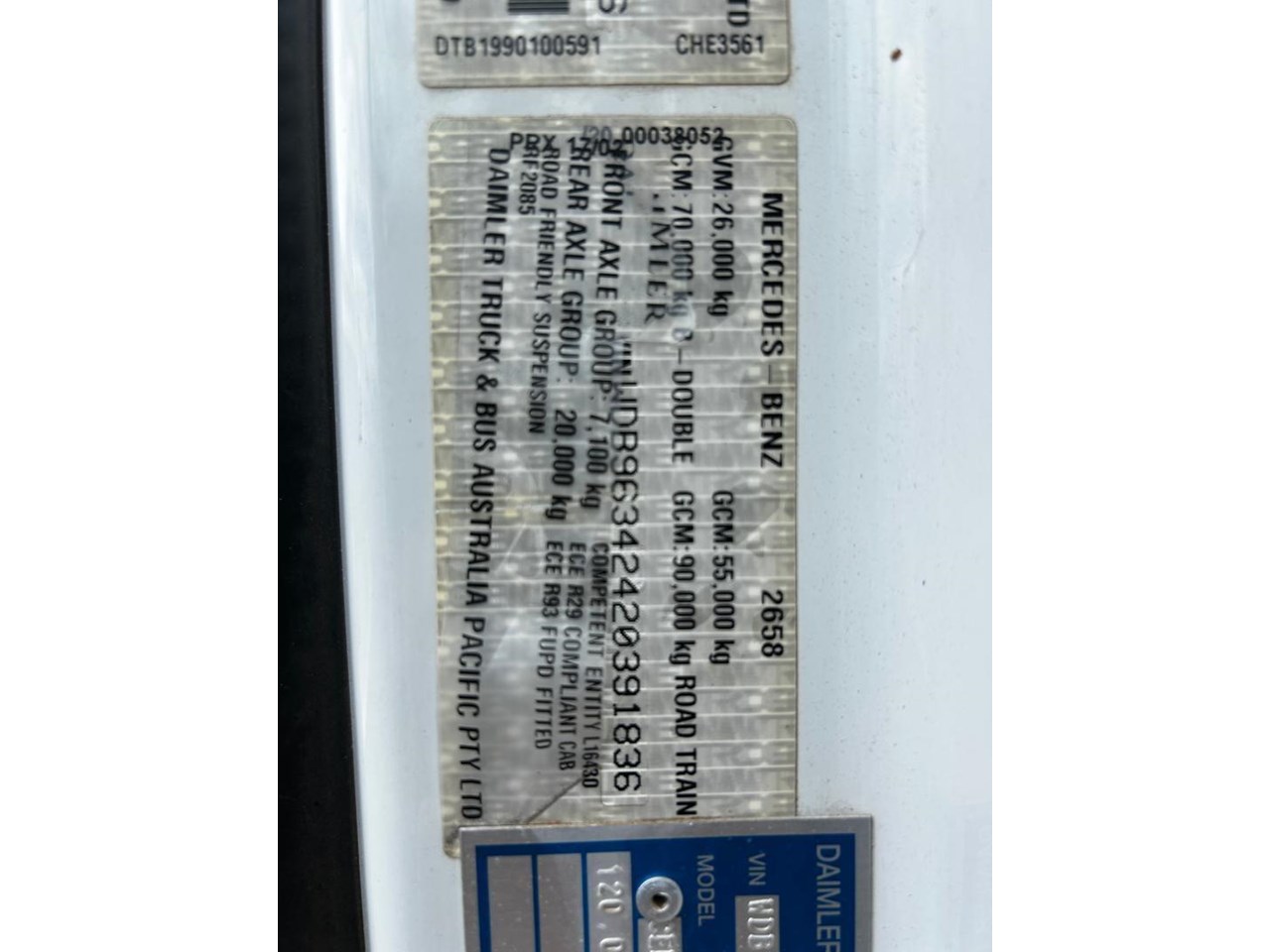 2020 Mercedes-benz Actros 2658 6x4 prime mover , M-benz 580hp, ~\r\n658,000klms auto trans, airbag suspension, ~\r\n120t rated, abs, integrated sleeper cab with ice pack , bullbar, alloy rims, tool box, over head cabinets , excellent cond ex fleet truck with service history comes with 3 months or 50,000klms drive-line warranty & vic RWC !
