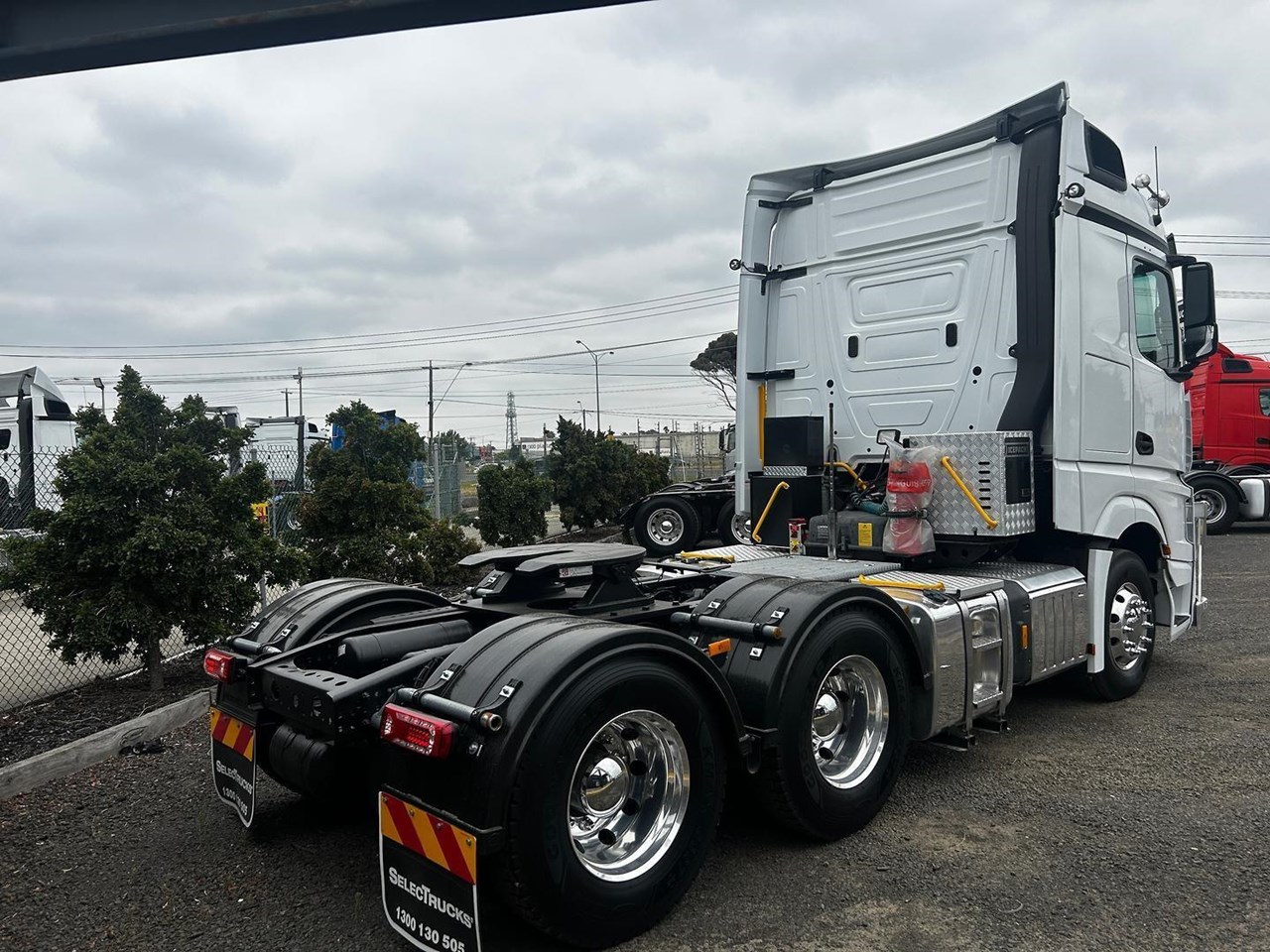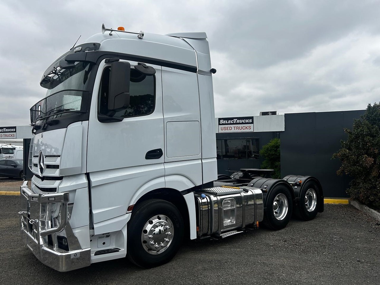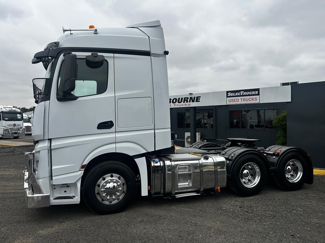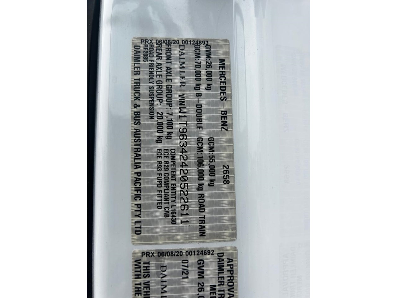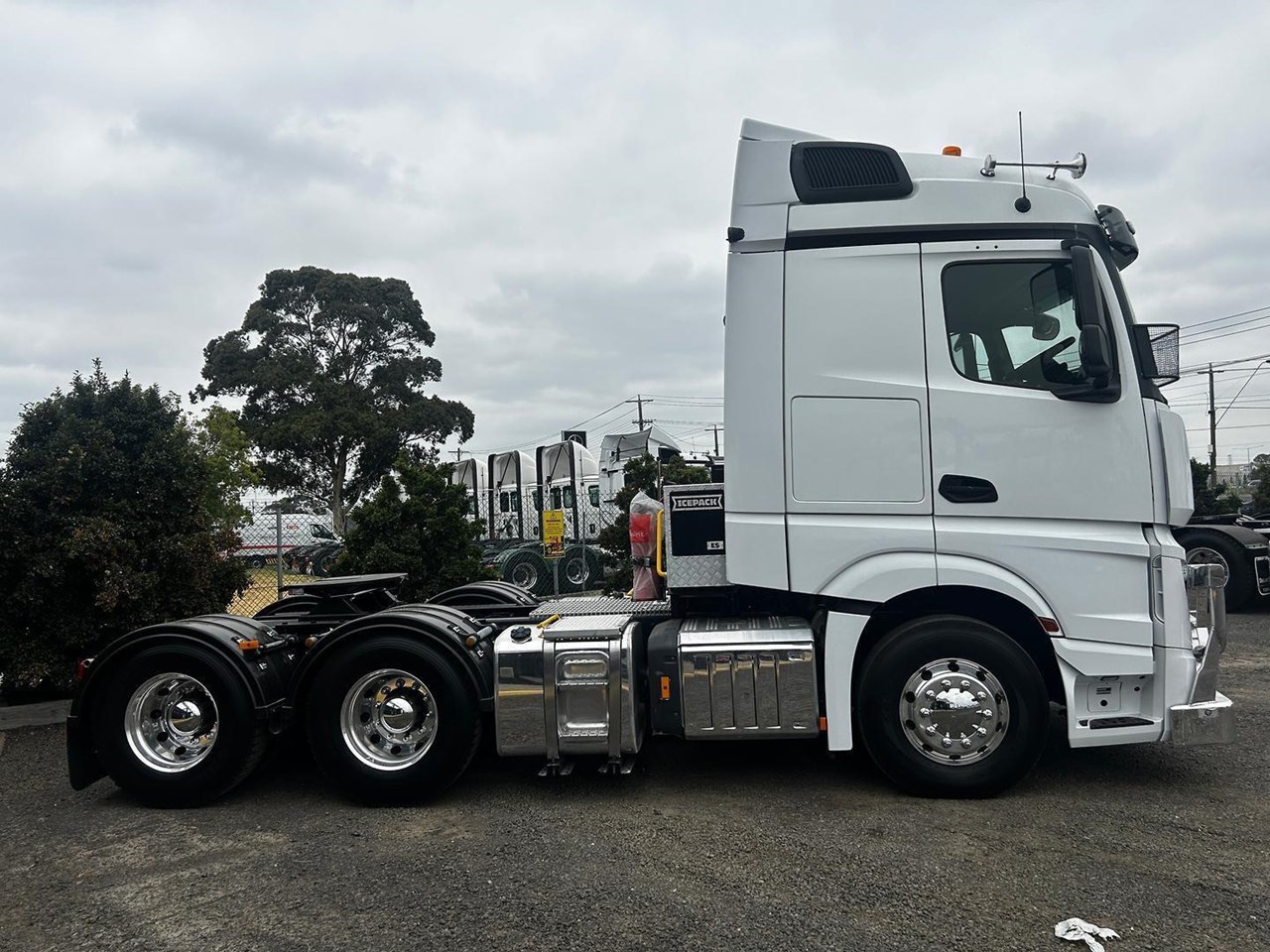 2021 Mercedes-benz Actros 2658 prime mover, m-benz 580hp engine, auto transmission, airbag suspension, m-benz diffs, abs, 106 tonne rated, integrated high roof sleeper, ice pack, alloy bullbar, alloy rims, ex one owner fleet truck with full service history, comes with vic RWC & 3 months or 50,000klms drive-line warranty !