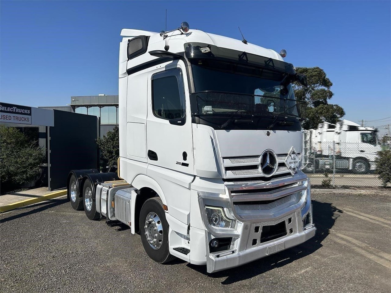 2020 Mercedes-Benz actros 2658 6x4 prime mover , M-Benz 580hp *~\r\nonly 200,000klms on new engine *~\r\nauto transmission, m-benz diffs, abs, 90 tonne rated , integrated high roof sleeper with bunk cooler, alloy bullbar, alloy rims, one owner truck with service history, comes with vic RWC & 3 months or 50,000klms warranty ! ( file pics )
