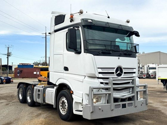 2019 Mercedes Benz 2663 6x4 Prime Mover, 630Hp Benz Engine, 12 Speed AMT Transmission, Mercedes Benz Rear Axles on Air Bag Suspension, Alloy Bull with Tow Pin, Mesh Stone Guard, Sun Visor, 4 x LED Spot Lights on Roof Bar, Aero Kit with Wings, Square Tanks, Plastic Drive Guards, Fixed QRTT, AutoClimba Bunk Cooler, Chassis Deck Plate, Air Ride Drivers Seat, Double Din Stereo Unit, A/C, Power Steering,