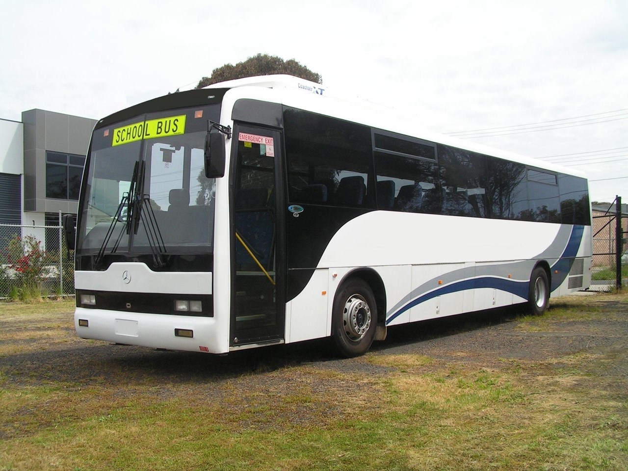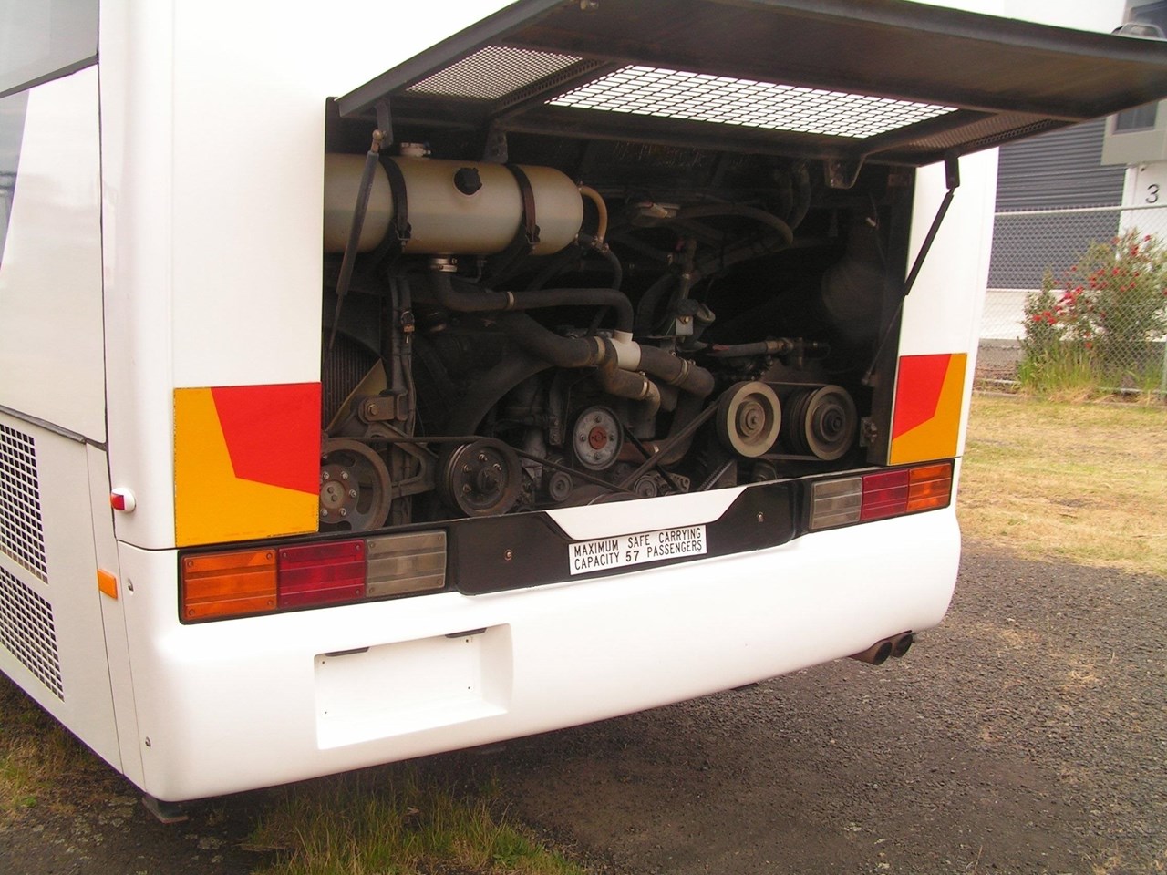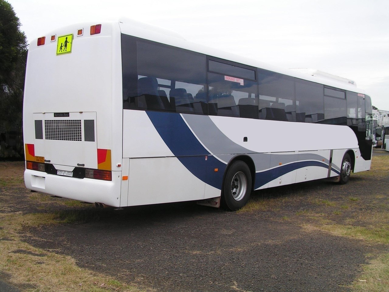 Rear mount Mercedes-Benz 6-cylinder intercooled turbo diesel motor 300 HP, automatic transmission (both in excellent condition). McConnell 57 passenger cloth seats with lap sash belts, complete interior in as new condition. Coachair climate control air conditioning. Full through bins with lockable bin doors. Full airbag suspension including kneel and raise facility. Full air brakes, maxi brake, exhaust brake, power steer, tilt and telescopic steer, steering lock, long range fuel tank, tinted bonded windows with lockable hopper window ventilation (can leave open when raining), ISR driver's seat with belt, electric delay wipers, two large ceiling hatch emergency exits (five exits in total), air door, school lights, Clarion CD radio etc. Michelin tires 295/80R22.5 all good including spare, tool box. Finished in stretch panel with a very nice aluminium body, length is 12.5 metre. One country owner. Service history from new. Cruise 100 k's with ease. Coach has been maintained very well and is suitable for commercial operations. Click on VISIT WEBSITE under the logo to view all of our direct from service vehicles. All located together, inspection any day by appointment. More photo's arriving soon.