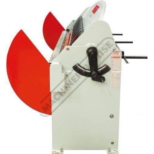Includes an adjustable rear manual backgauge also adjustable for tapered material
