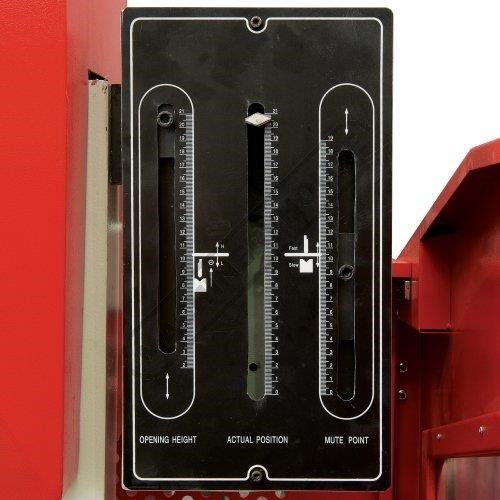 Hydraulic pressure gauge with quick adjust pressure control & over pressure protection allows the operator to accurately set the pressure required for different material thickness.