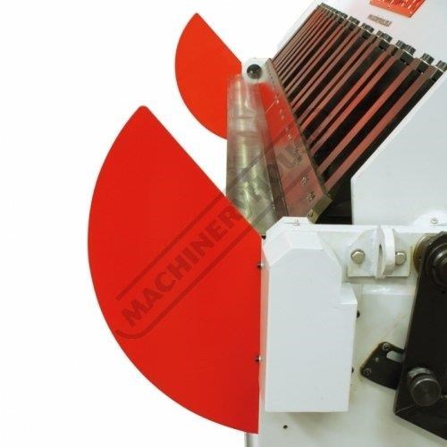 Includes an adjustable rear manual backgauge also adjustable for tapered material
