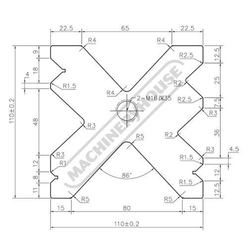 - Multi V bottom die block 110 x 110mm with a range of V's between 8mm~80mm