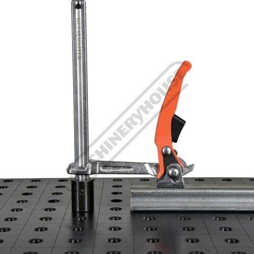 Designed to simply insert into any 16mm welding table holes with the added efficiency gained by the quick action ratchet action handle. The 120mm throat & 300mm clamping height capacity it provides a compact & easy to use clamping solution. Use in conjunction with our optional magnetic V-Pads on the clamp pad to aid in clamping of round material.