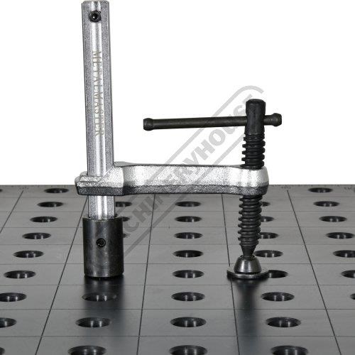 Designed to simply insert into any 16mm welding table holes for fast & efficient clamping. With an 80mm throat & 150mm clamping height capacity it provides a compact & easy to use clamping solution. Use in conjunction with our optional magnetic V-Pads on the clamp pad to aid in clamping of round material.