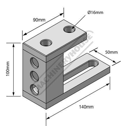 WT16-CSQ100 Clamping Square 140 x 90 x 105 x 50mm, 3 machined faces, 100mm high Suits Ø16mm Welding