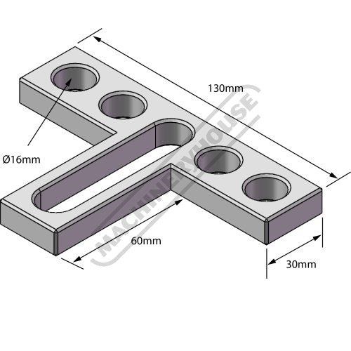 METALMASTER WT16-TB130 T Bracket 130 x 90 x 30mm, 4 Holes, 1 Slot Suits Ø16mm Welding Tables Holes