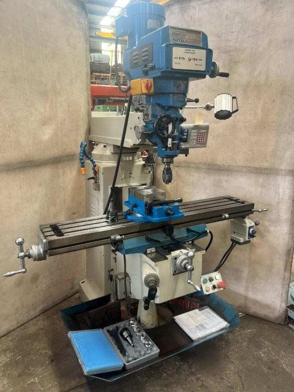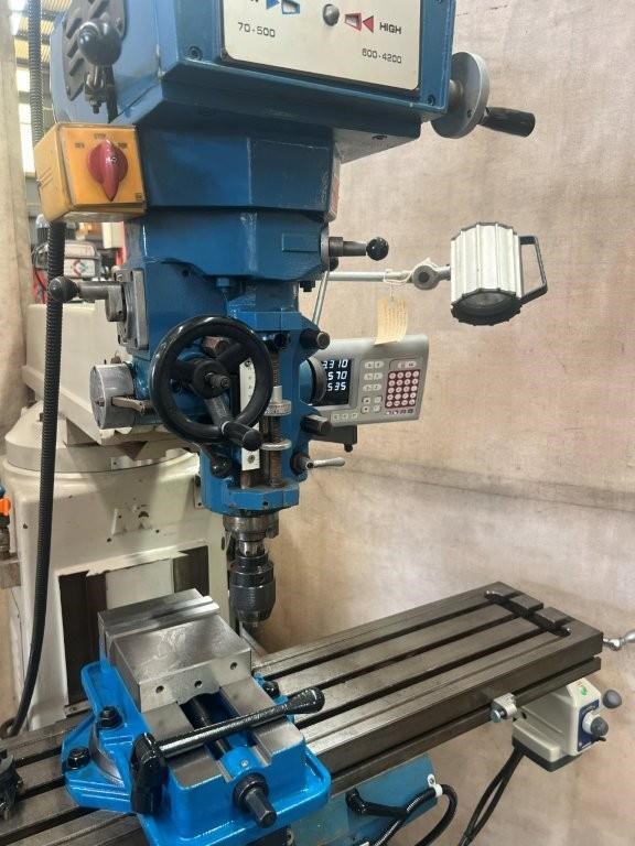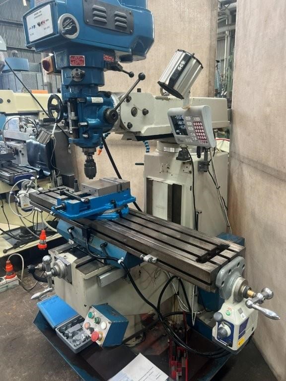 Feed and rapid to X axis, 3 axis DRO, 3hp 415 volt.