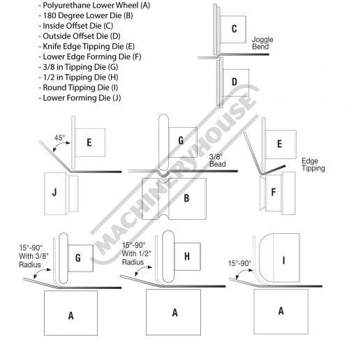 With these dies you can create offset flanges contours deep channels and style lines. This kit also includes a polyurethane lower wheel which can be used with a variety of upper dies.