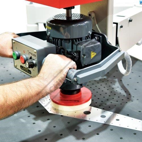 Easy-to-use swinging arm and weight compensation allows the operator to adjust the pressure exerted on the material as required