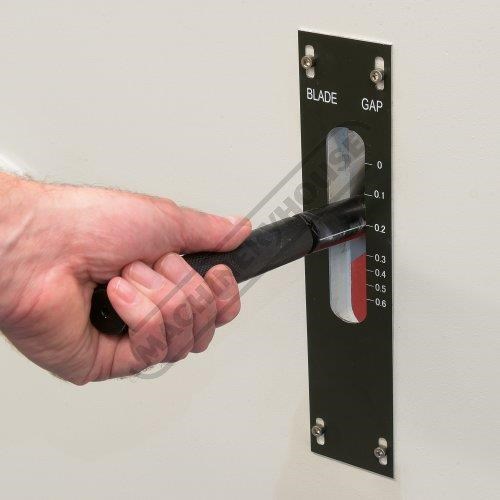 Quick action blade clearance adjustment for shearing material 1 - 4mm