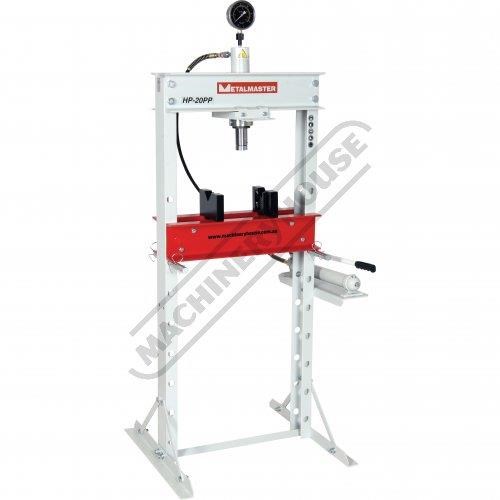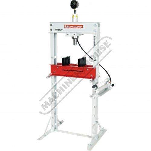 METALMASTER HP-20PP Workshop Hydraulic Press - 20 Tonne High Strength Steel Construction Includes Adjustable Sliding Cylinder Ram, Pressure Gauge & Bending Vee Plates
