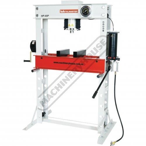 METALMASTER HP-45P Workshop Hydraulic & Pneumatic Press - 45 Tonne High Strength Steel Frame Construction Includes Table Winch System, Pressure Gauge & Bending Blocks