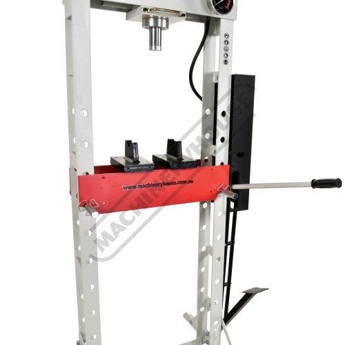 METALMASTER HPF-20 Trade Hydraulic Press - 20 Tonne Robotic Welded Steel Frame Construction Includes Adjustable Sliding Cylinder Ram, Foot & Hand Operated Pump, Pressure Gauge & Bending Vee Blocks