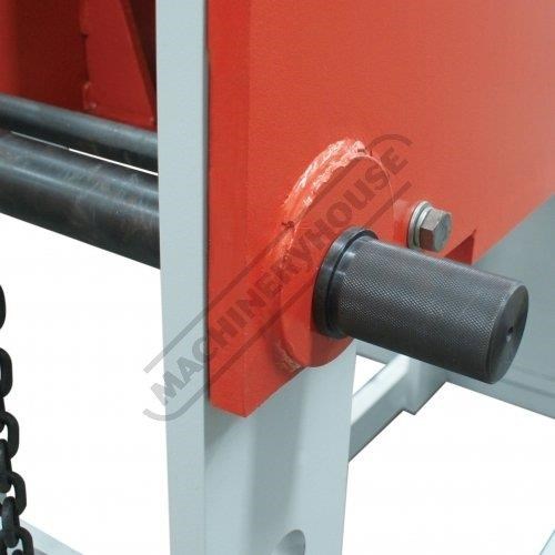 Movable cylinder (left-right) via crank hand wheel allows operator to reposition the cylinder for off centre work