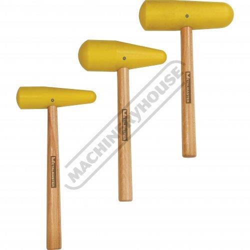 METALMASTER NMS-3T Nylon Bossing Mallet Set - Tapered & Radius Ends Oak Wooden Handle Ø50 x 173mm - 370 Grams, Ø68 x 197mm - 600 Grams, Ø66 x 210mm - 800 Grams