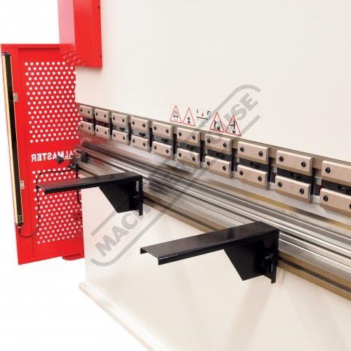 Sliding front material sheet supports enabling a wide range of material sizes to be aligned and supported at the required height. This feature is achieved with a ``T`` slot machined down the total length of the die bed; sheet supports are also adjustable vertically to assist in supporting material with return bends already folded.