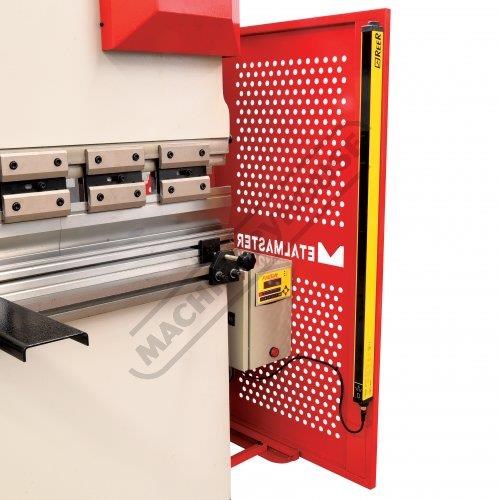Rear sliding safety gate with micro switch combined with access panels placed at each end of machine allows the operator to clearly view tooling and work piece during the bending operation Metalmaster specially design gates to suit Australian safety requirements