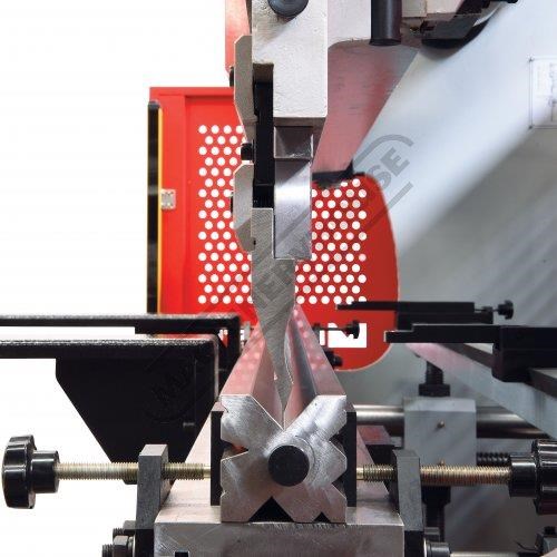 Multi vee ('V') bottom die is made from one 2500mm solid die block design to handle heavy plate safety edge vee ('V') is incorporated in bottom die block.