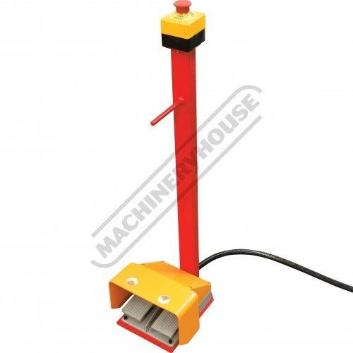 - Emergency stop buttons conveniently located on control panel and foot control