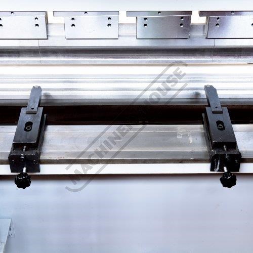 Hydraulic synchronised positive stop design the ram stroke is controlled by a precision mechanical nut depth stop built into each cylinder electronically controlled by Estun NC-E21 digital control assuring accuracy and repeatability.