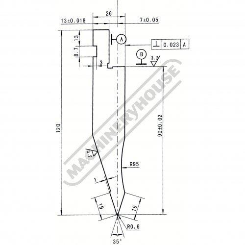 Segmented heavy duty 35° offset top punch is segmented for selective bend width applications and offset for return bend clearance.