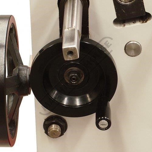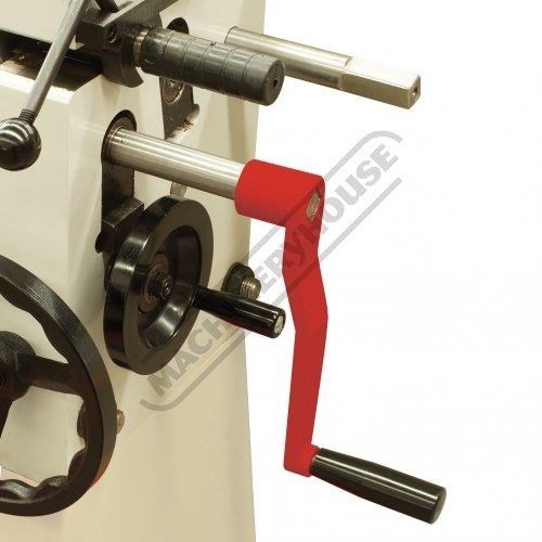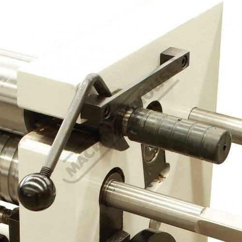The SRG-50E sheet metal curving rolls are engineered for precision and ease of use. A single handwheel adjusts both sides of the rollers simultaneously through a wedge-type system, enabling effortless clamping for varying material thicknesses. Additionally, another handwheel controls the rear curving roll using a worm gear and lever cam mechanism, simplifying the process of curving sheet metal.