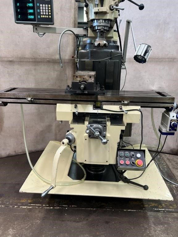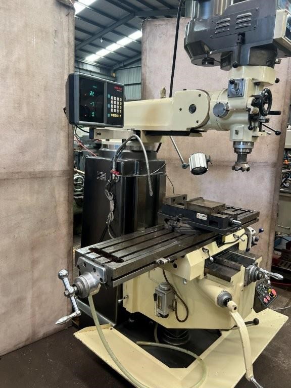 3 axis DRO, coolant, work light, vice, sundry tooling.