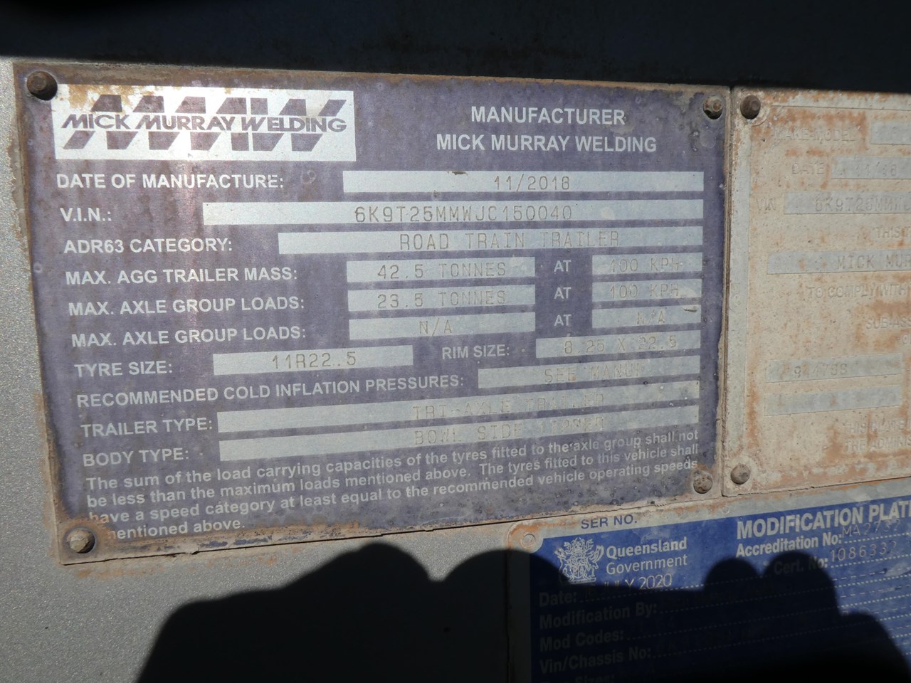 2018 MICK MURRAY WELDING TRI AXLE SIDE TIPPER, BPW AXLES, BPW AIRBAG SUSPENSION, TARP, 10 STUD, 42500KG ATM, LEAD TRAILER