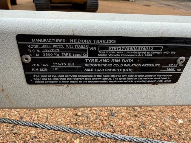 Title | 2022 MILDURA TRAILERS 1000L DIESEL FUEL TRAILER |