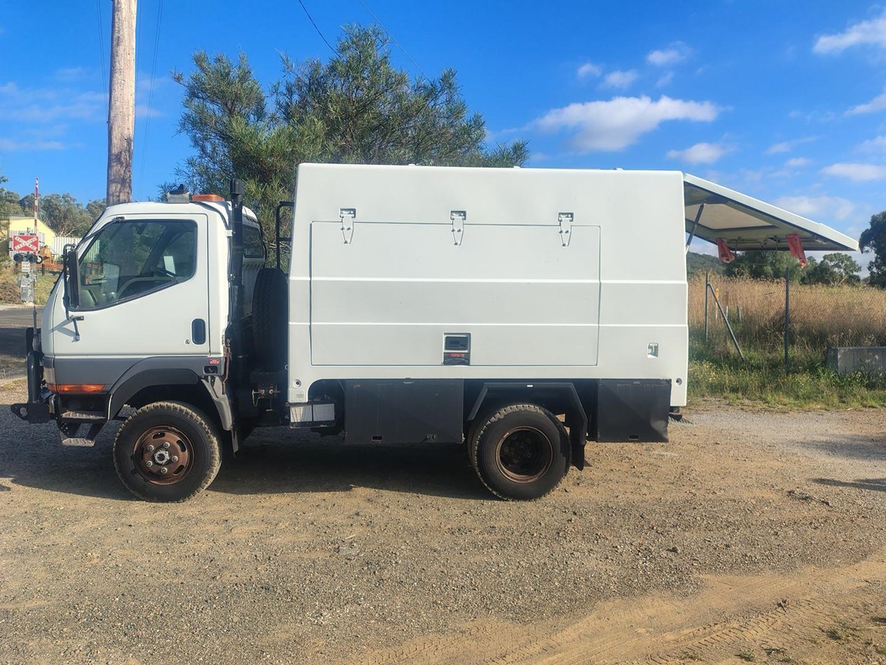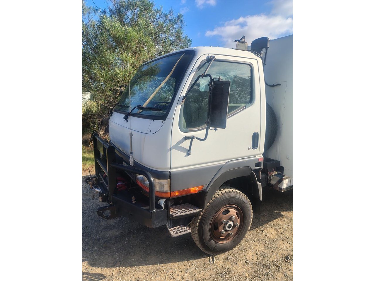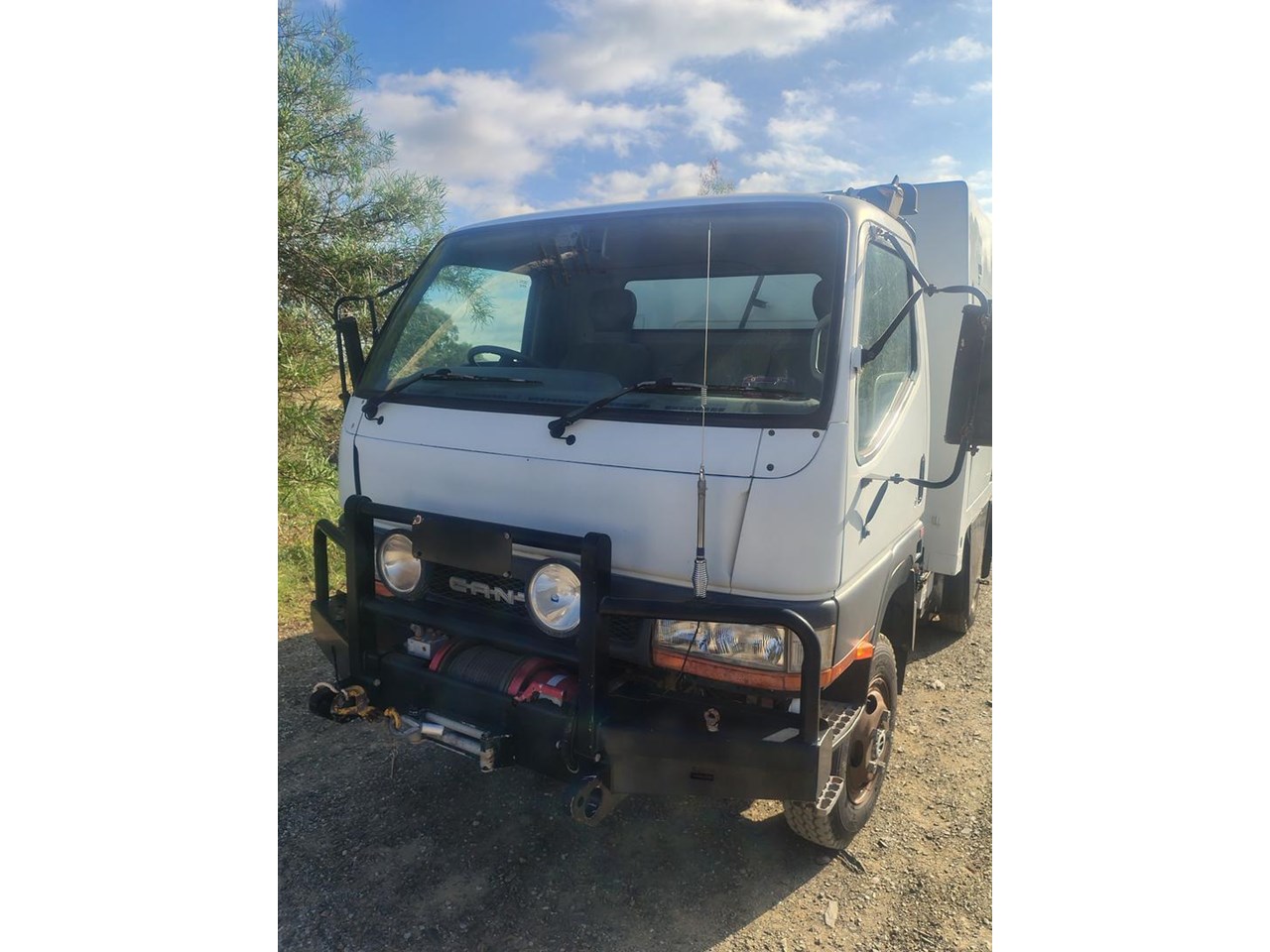 2000 Mitsubishi Canter 4x4 with Camper body, ex Defence, very well equipped with fibreglass camper body, 7.5t winch, 200L fuel tank, 50L water tank, built in compressor, solar panel with 12, 24 and 240 volt power, cab controled airbag suspension helpers, bull bar and tow bar.