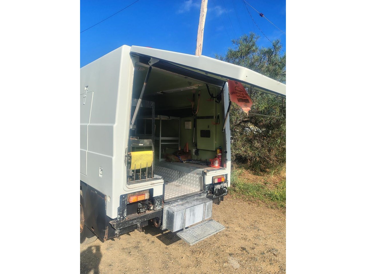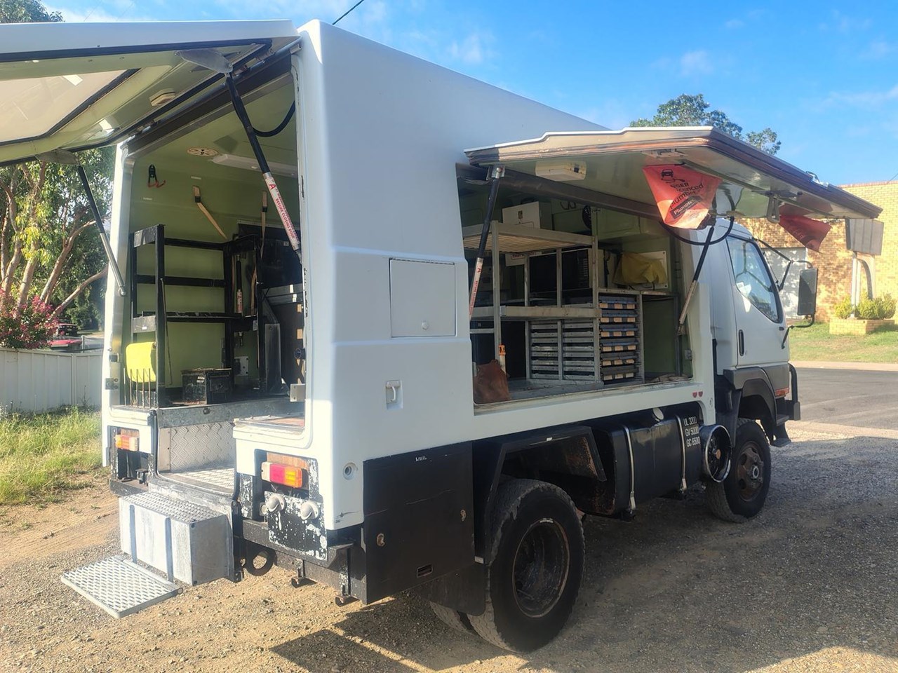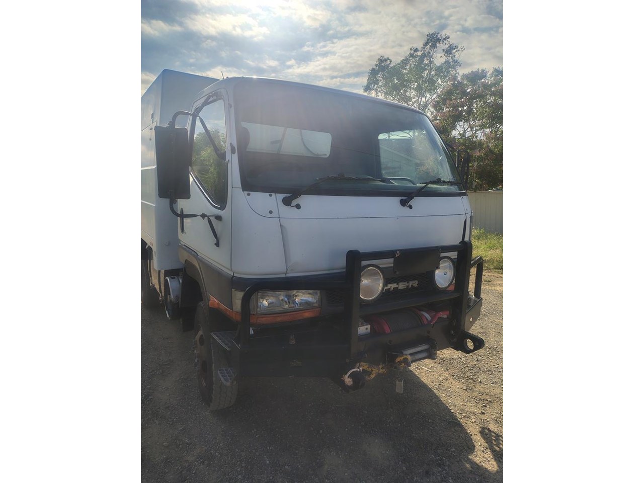 2000 Mitsubishi Canter 4x4 with Camper body, ex Defence, very well equipped with fibreglass camper body, 7.5t winch, 200L fuel tank, 50L water tank, built in compressor, solar panel with 12, 24 and 240 volt power, cab controled airbag suspension helpers, bull bar and tow bar.
