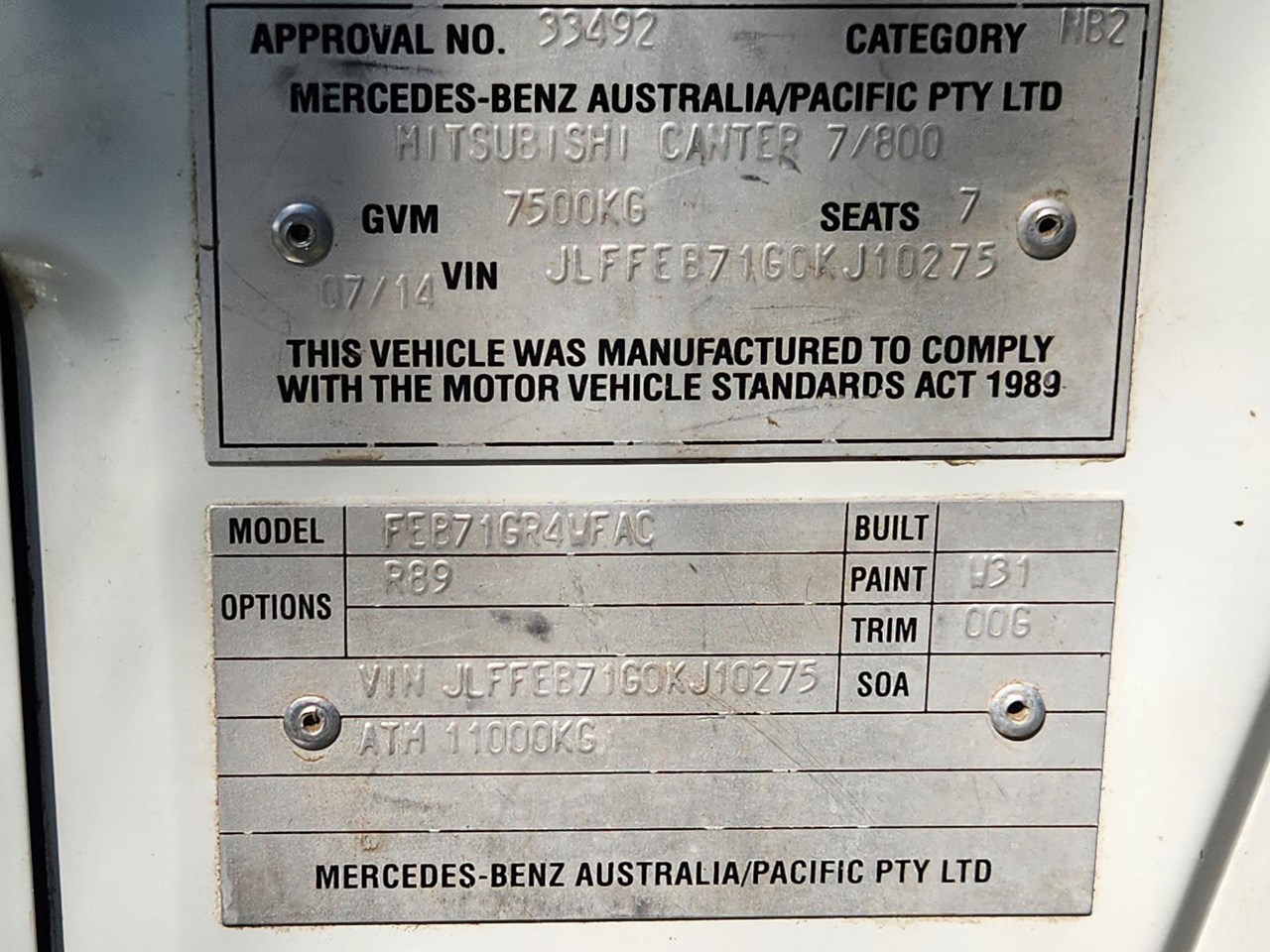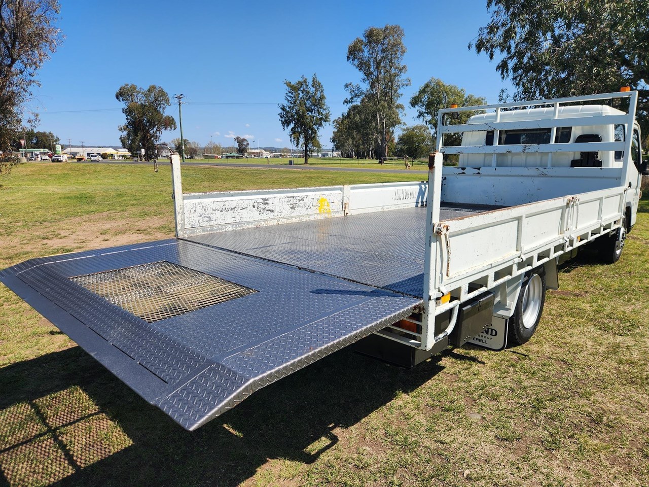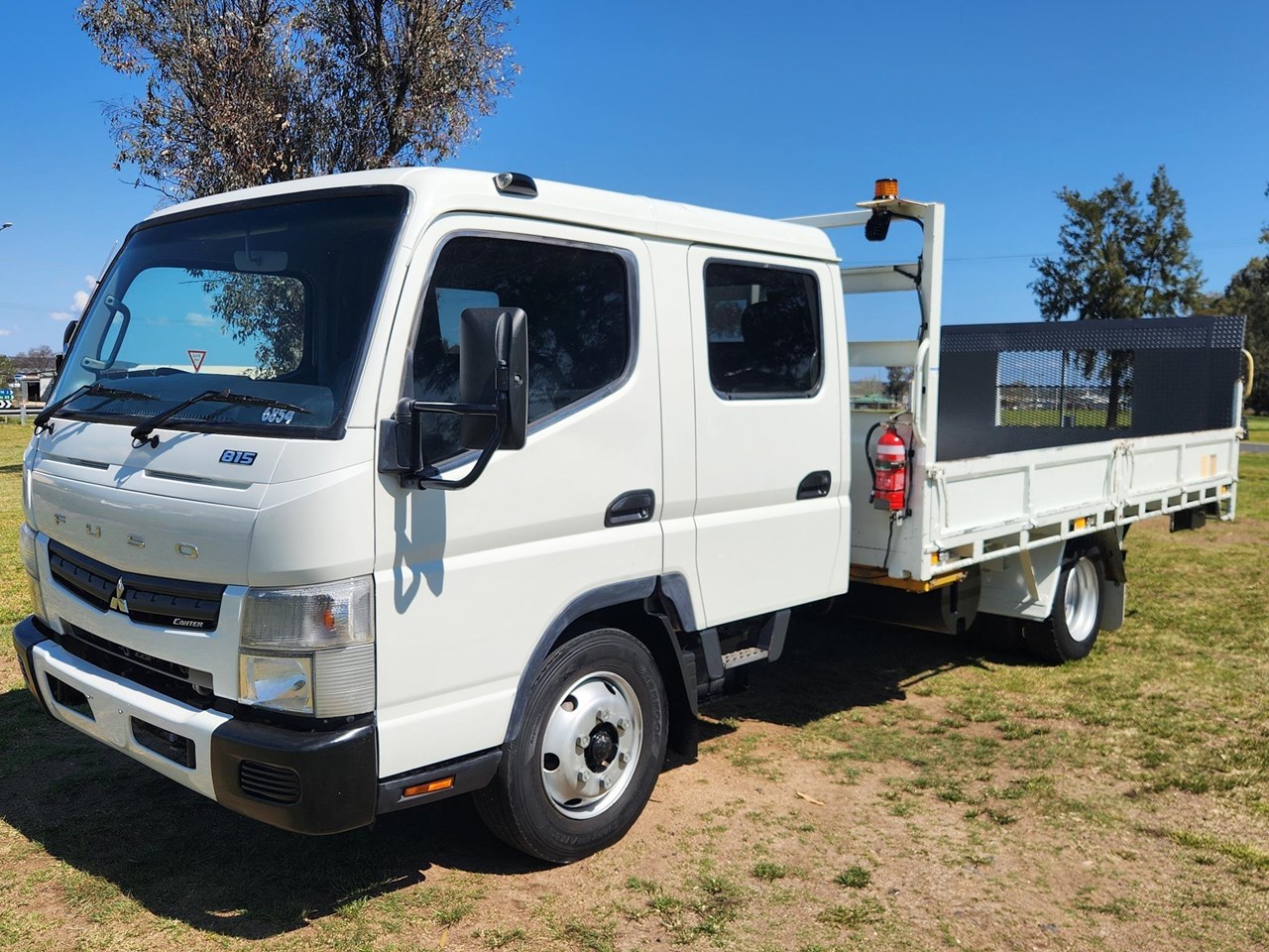 2014 Mitsubishi Fuso Canter 815 Dualcab 4x2 Traytop with Tieman Tailgate Loader. Ex Council with only 146,934 Kms ( We also have a Fuso Canter 918 Crewcab with Crane in stock with only 90,000 Kms ) Mitsubishi Fuso 150HP Intercooled Turbo Diesel,5 Speed Manual Transmission,Dual Rear Wheels 7 Seats with Dual Air Conditioning in Front & Rear Towbar,Window Tint,Fire Extinguisher Fitted with Steel Tray Body with Checkerplate Steel Floor with Multiple Tie Points in Tray 4x Separate Dropsides,Dual Revolving Lights & Work Lights,Underbody Water Tank,Slide Out Step Tray L-4300 x W-2400. Sides 360 High. Tieman 750Kg Full Width Steel Tailgate Loader with Remote Control Tailgate Loader W-2380 x H-1100 GVM 7500. GCM 11000. Wheelbase 3800. Sold fully serviced with NSW or QLD Roadworthy Price includes GST and Tax Invoice Competitive finance available Delivery arranged to any state Independent inspections welcome Many other similar spec trucks in stock including Isuzu NQR450,NPR400,NPR300,NPR275,NPR250,NPR200,NPS300,NLS45/150 AWD Hino Dutro 300 Series Mitsubishi Fuso Canter Iveco Daily Hyundai Mighty & HD45 Single Cab & Dual Cab Automatic & Manual 4x2 & 4x4 Tabletop,Service Body,Cranetruck,Cab/Chassis,Tipper,Beavertail,EWP,Curtainside,Refrigerated Pantech,Water Truck,Fire Truck Ex Govt,Council,Forestry,National Parks,RMS,QLD Main Roads,SES,Rescue Squad,Fire & Rescue Service,Rural Fire Service,Coles,Woolworths & Major Fleets Established 1991 with over 200 Trucks in stock
