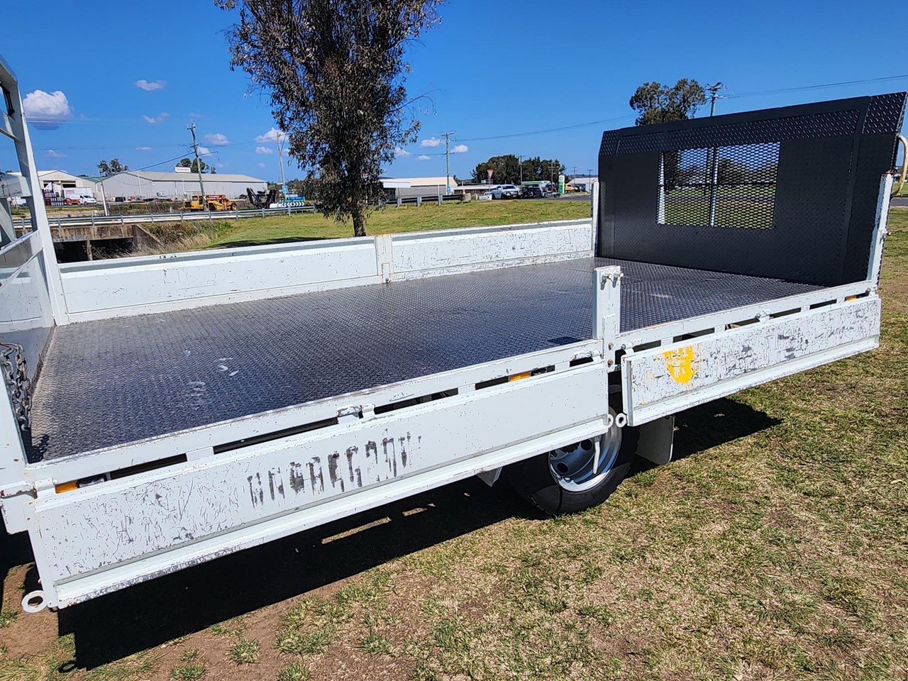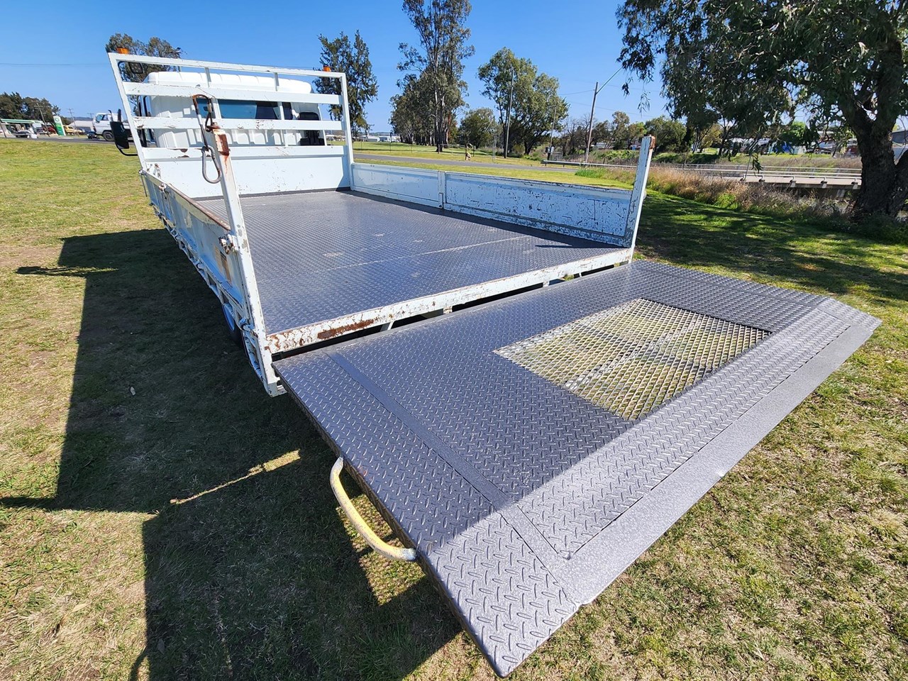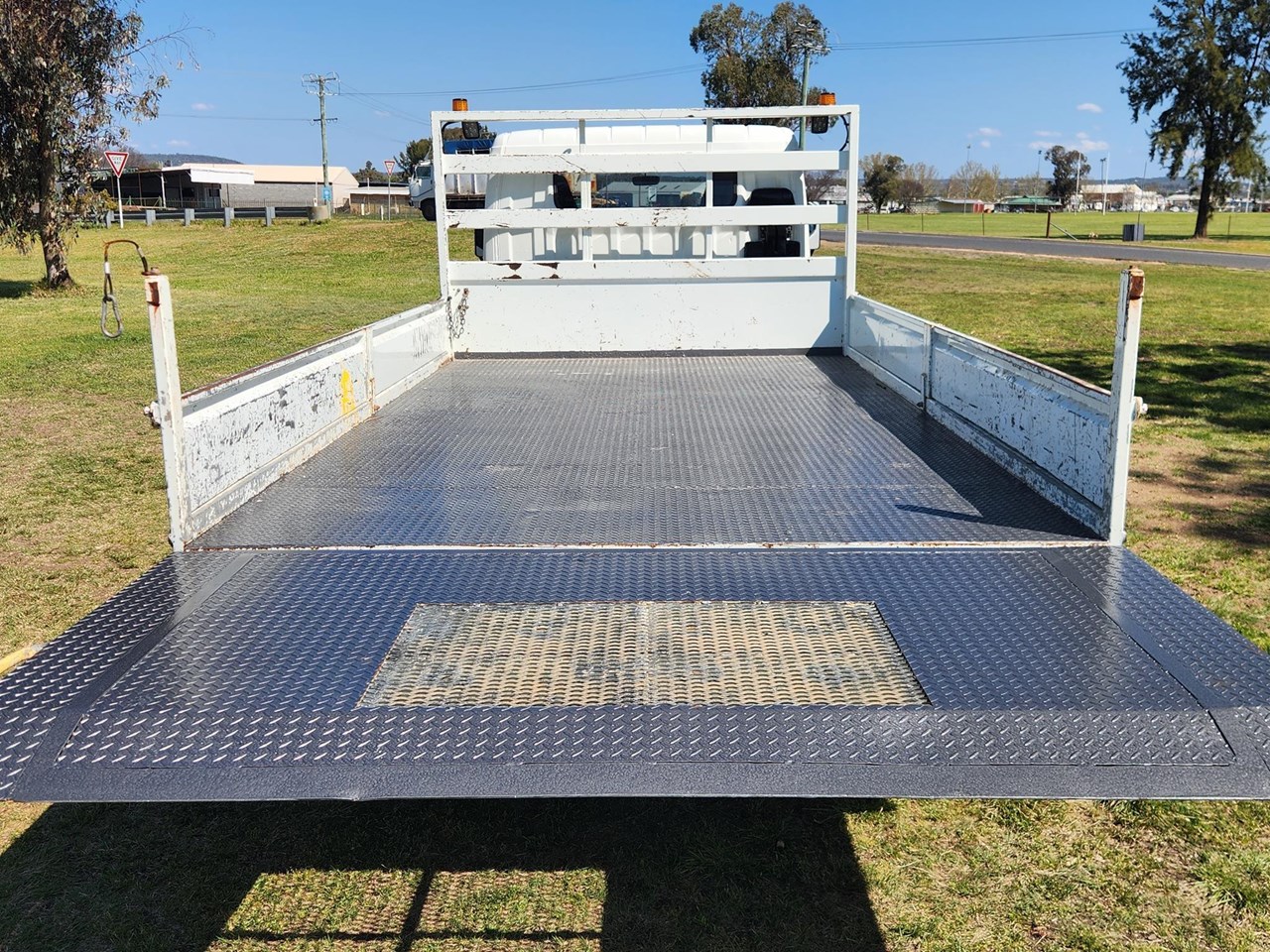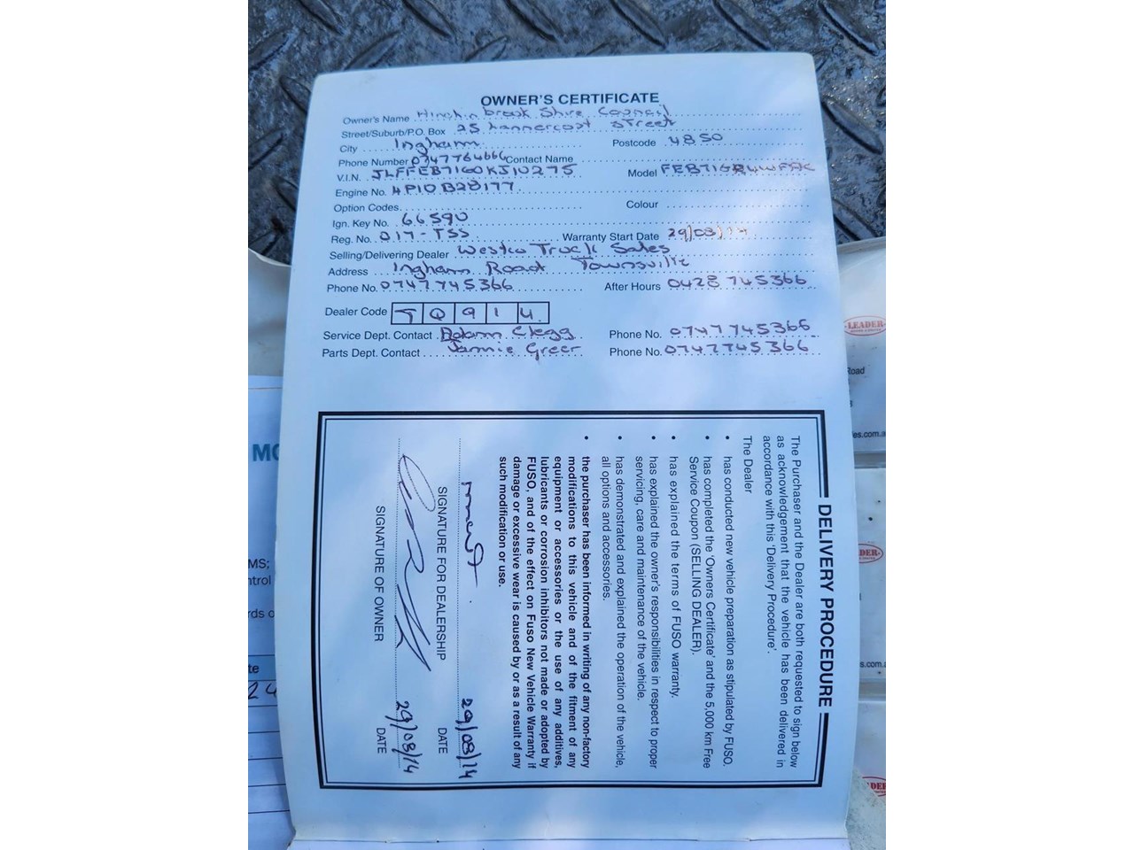 2014 Mitsubishi Fuso Canter 815 Dualcab 4x2 Traytop with Tieman Tailgate Loader. Ex Council with only 146,934 Kms ( We also have a Fuso Canter 918 Crewcab with Crane in stock with only 90,000 Kms ) Mitsubishi Fuso 150HP Intercooled Turbo Diesel,5 Speed Manual Transmission,Dual Rear Wheels 7 Seats with Dual Air Conditioning in Front & Rear Towbar,Window Tint,Fire Extinguisher Fitted with Steel Tray Body with Checkerplate Steel Floor with Multiple Tie Points in Tray 4x Separate Dropsides,Dual Revolving Lights & Work Lights,Underbody Water Tank,Slide Out Step Tray L-4300 x W-2400. Sides 360 High. Tieman 750Kg Full Width Steel Tailgate Loader with Remote Control Tailgate Loader W-2380 x H-1100 GVM 7500. GCM 11000. Wheelbase 3800. Sold fully serviced with NSW or QLD Roadworthy Price includes GST and Tax Invoice Competitive finance available Delivery arranged to any state Independent inspections welcome Many other similar spec trucks in stock including Isuzu NQR450,NPR400,NPR300,NPR275,NPR250,NPR200,NPS300,NLS45/150 AWD Hino Dutro 300 Series Mitsubishi Fuso Canter Iveco Daily Hyundai Mighty & HD45 Single Cab & Dual Cab Automatic & Manual 4x2 & 4x4 Tabletop,Service Body,Cranetruck,Cab/Chassis,Tipper,Beavertail,EWP,Curtainside,Refrigerated Pantech,Water Truck,Fire Truck Ex Govt,Council,Forestry,National Parks,RMS,QLD Main Roads,SES,Rescue Squad,Fire & Rescue Service,Rural Fire Service,Coles,Woolworths & Major Fleets Established 1991 with over 200 Trucks in stock