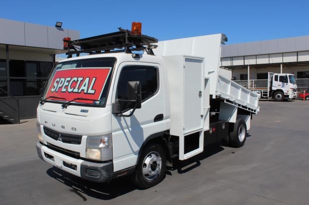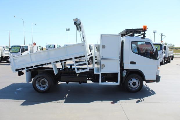 2015 Mitsubishi Canter 918 Tipper***Ex Council*** Truck Body Measures 2.95m (L) x 400mm (H) x 2.12m (W). Fitted with Drop Down Sides, Two-way Tailgate, Pull Out Tarp, Multihitch Towbar, Reverse Camera, Hand Wash Station, Two Underbody Toolboxes, Battery Isolator, Large Toolbox with Sign Rack, Amber Beacon Lights, Sign Board, Air Conditioning, Stereo, Power Windows, 5 Speed Manual Transmission, 150HP Turbo Diesel Engine, Travelled Only 153,543kms!!!